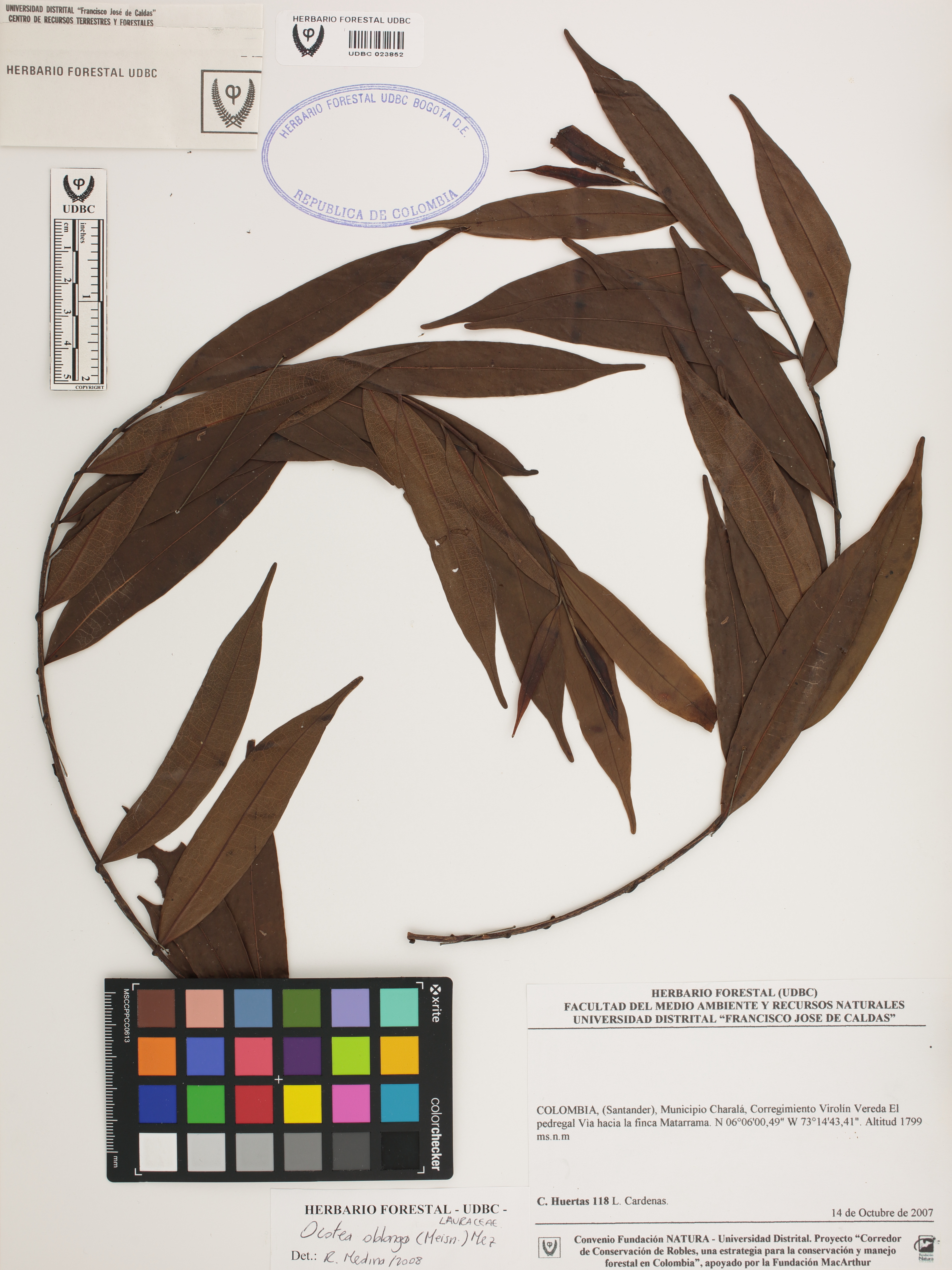 Fotografía del ejemplar Huertas, C. 118, determinado como Ocotea oblonga en el año 2008