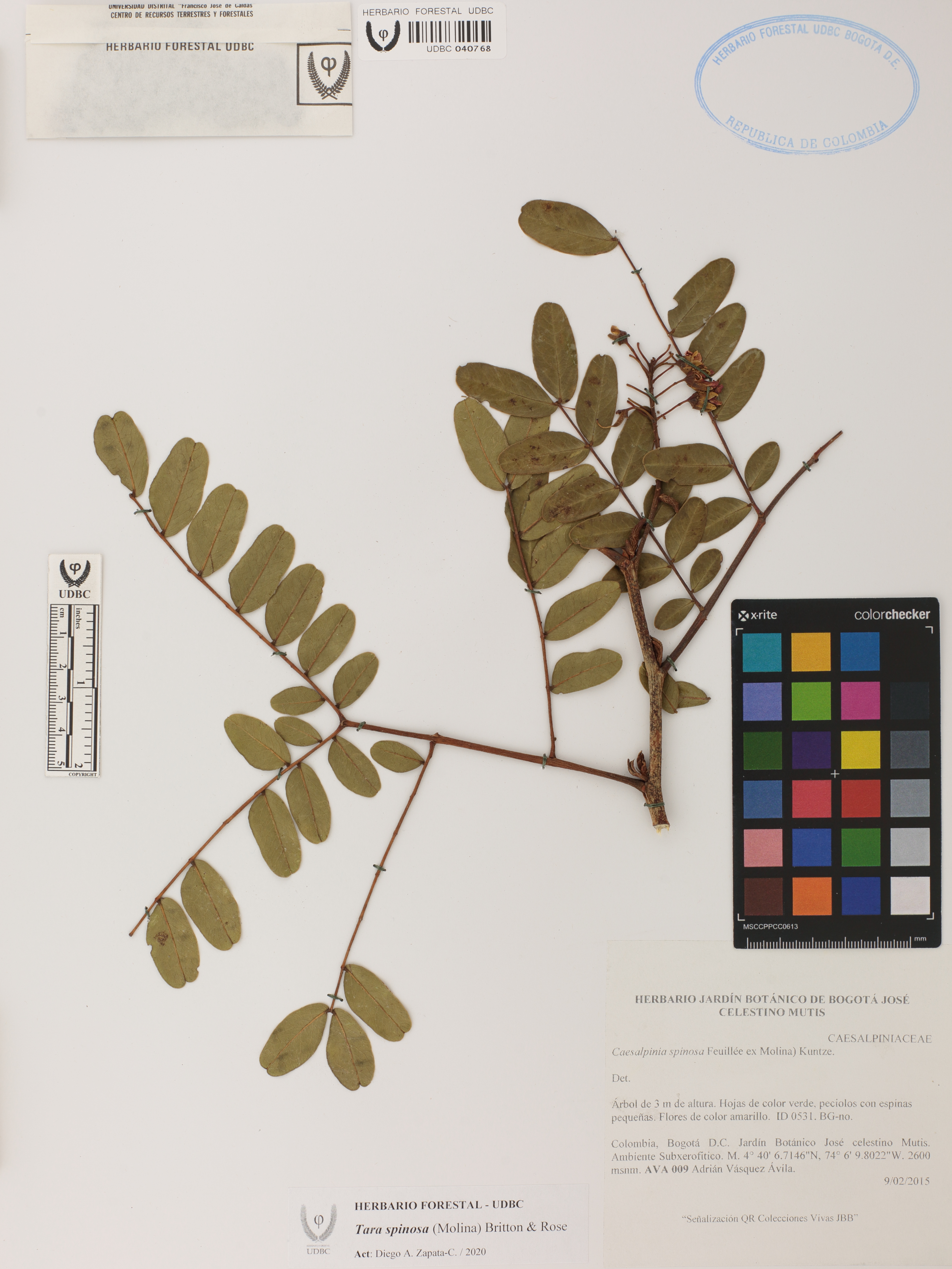 Fotografía del ejemplar Vásquez, A. 9, determinado como Tara spinosa en el año 2015