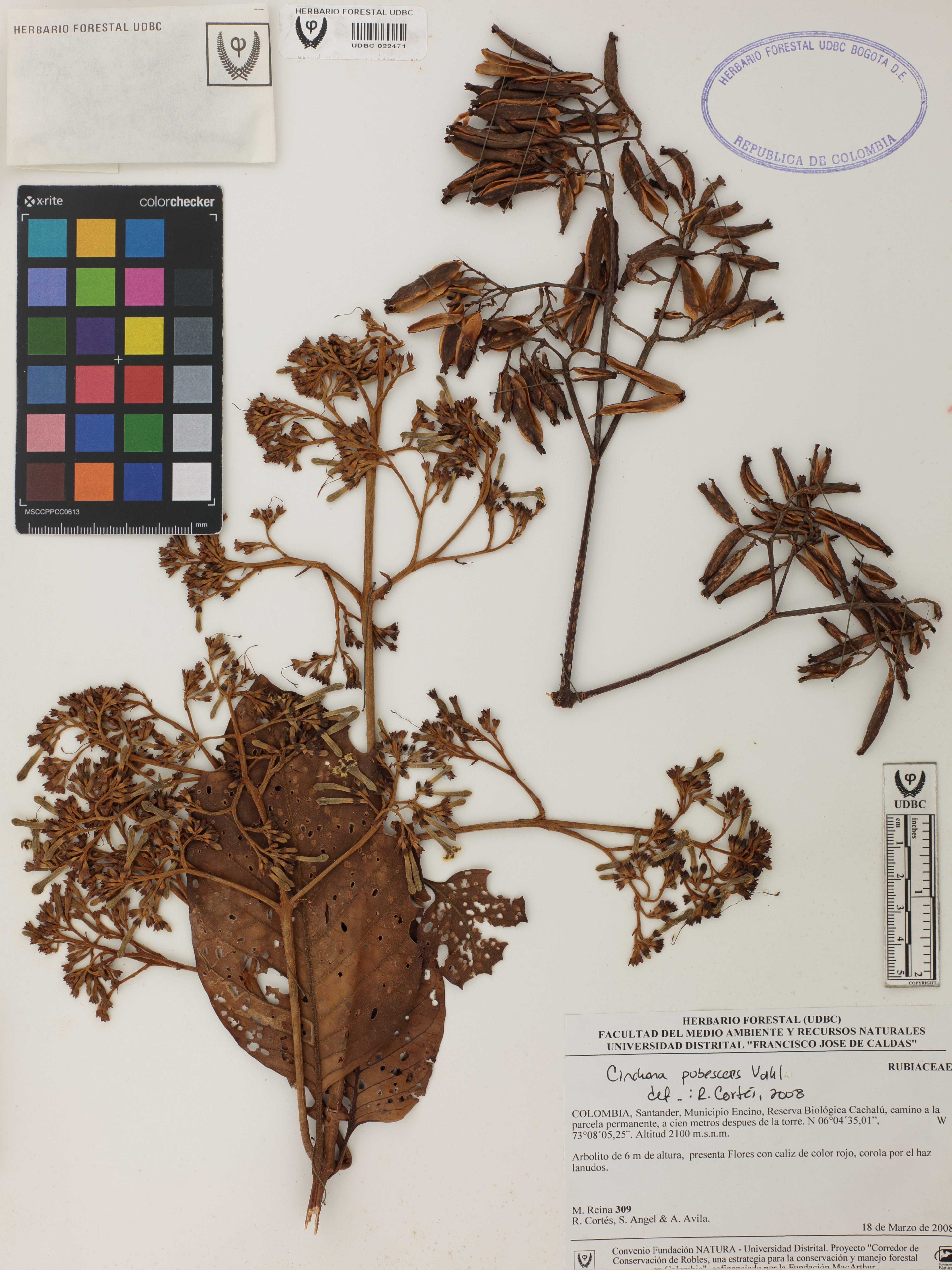 Fotografía del ejemplar Reina, M. 309, determinado como Cinchona pubescens en el año 2008