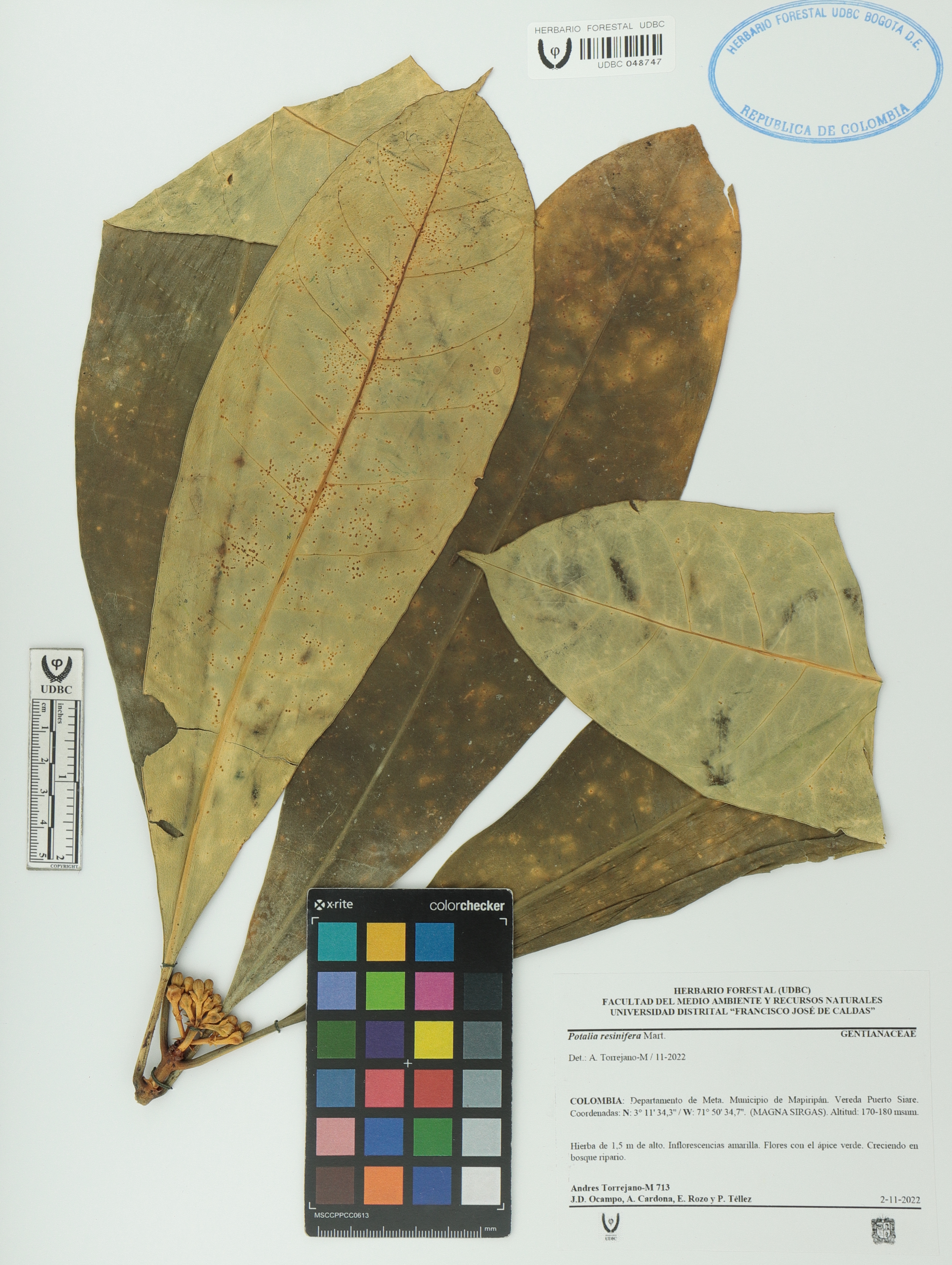 Fotografía del ejemplar Torrejano-M., Andrés 713, determinado como Potalia resinifera en el año 2022