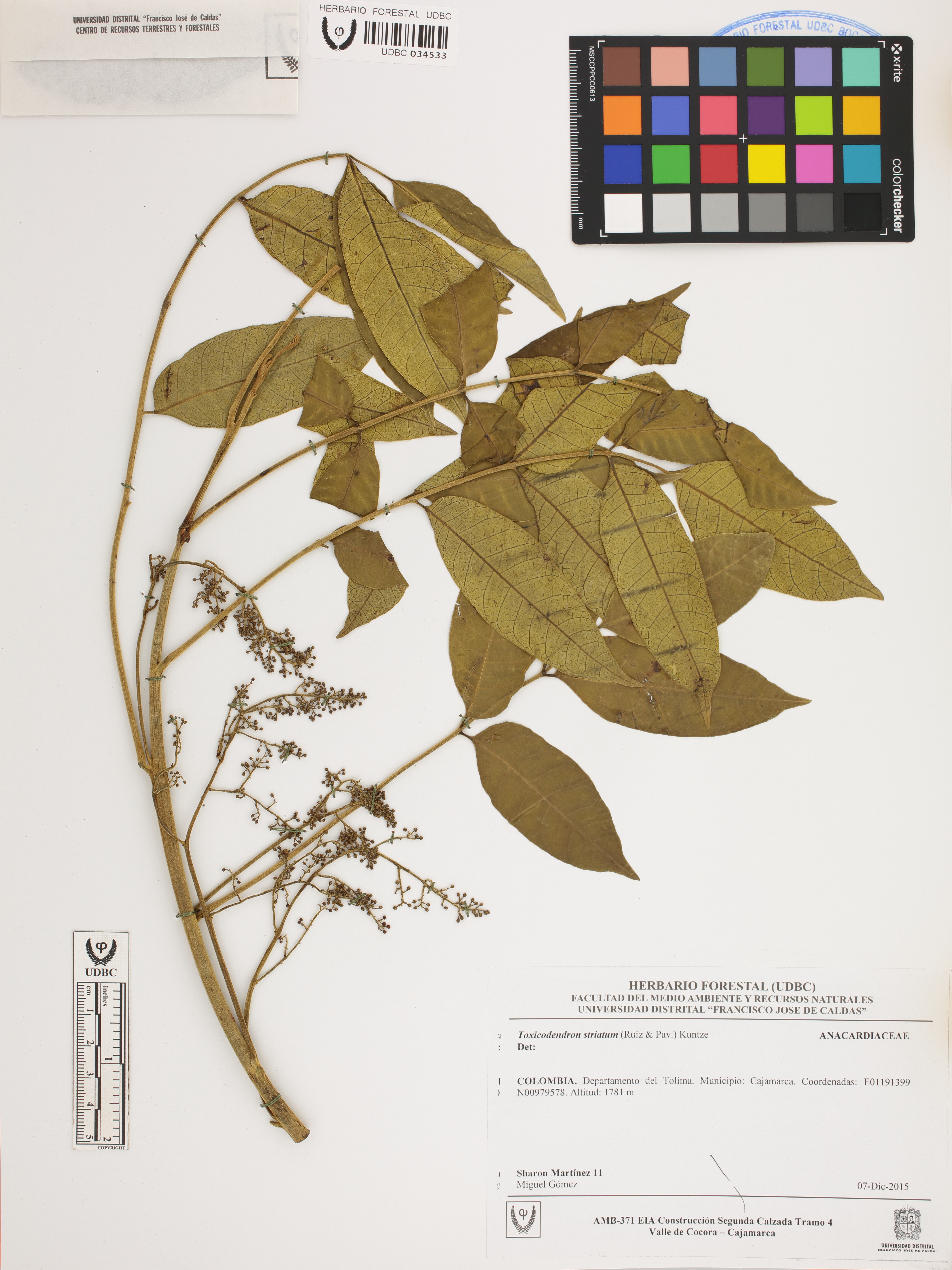 Fotografía del ejemplar Martínez, S. 11, determinado como Toxicodendron striatum