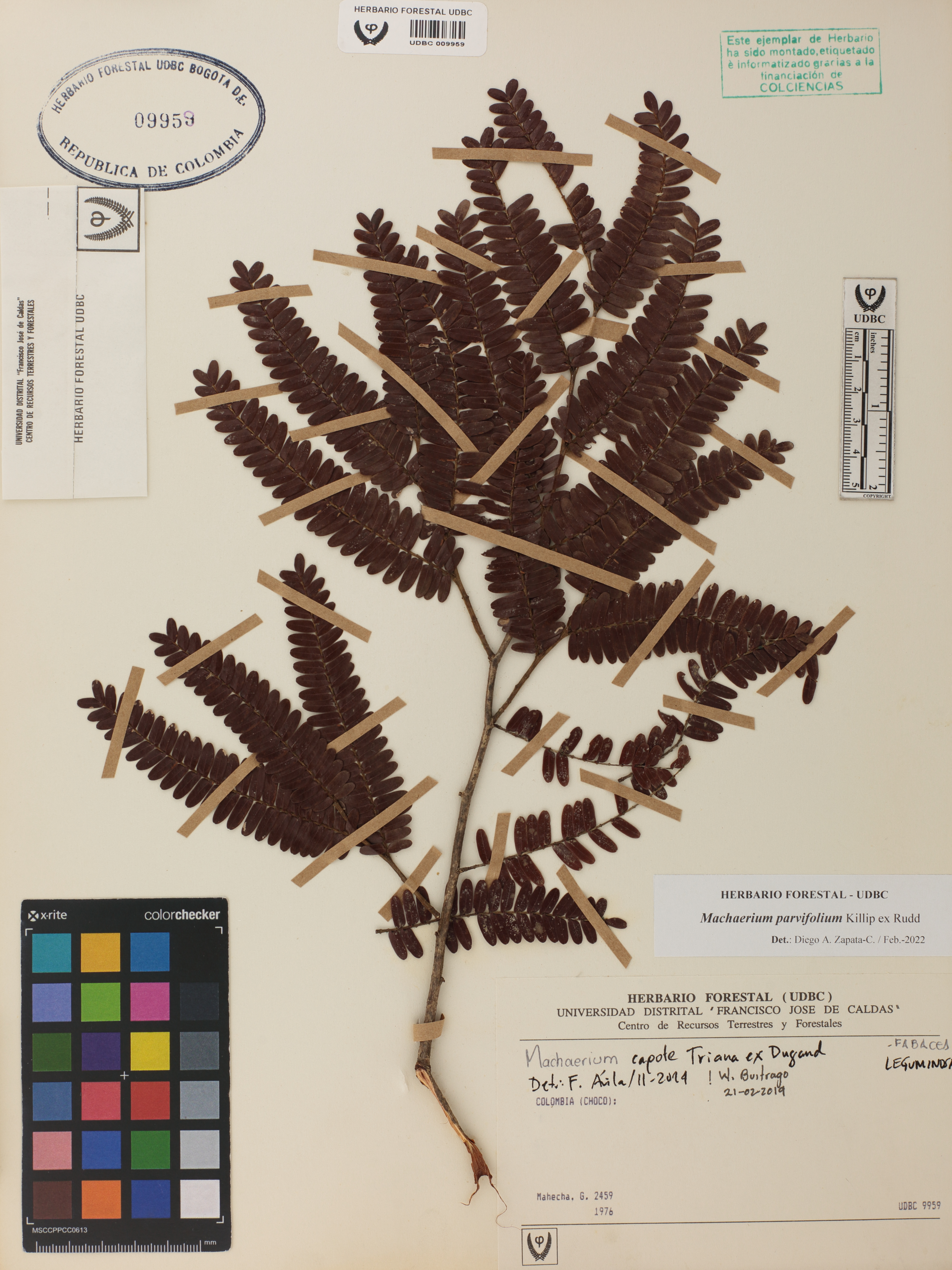 Fotografía del ejemplar Mahecha, G. 2459, determinado como Machaerium goudotii en el año 2022