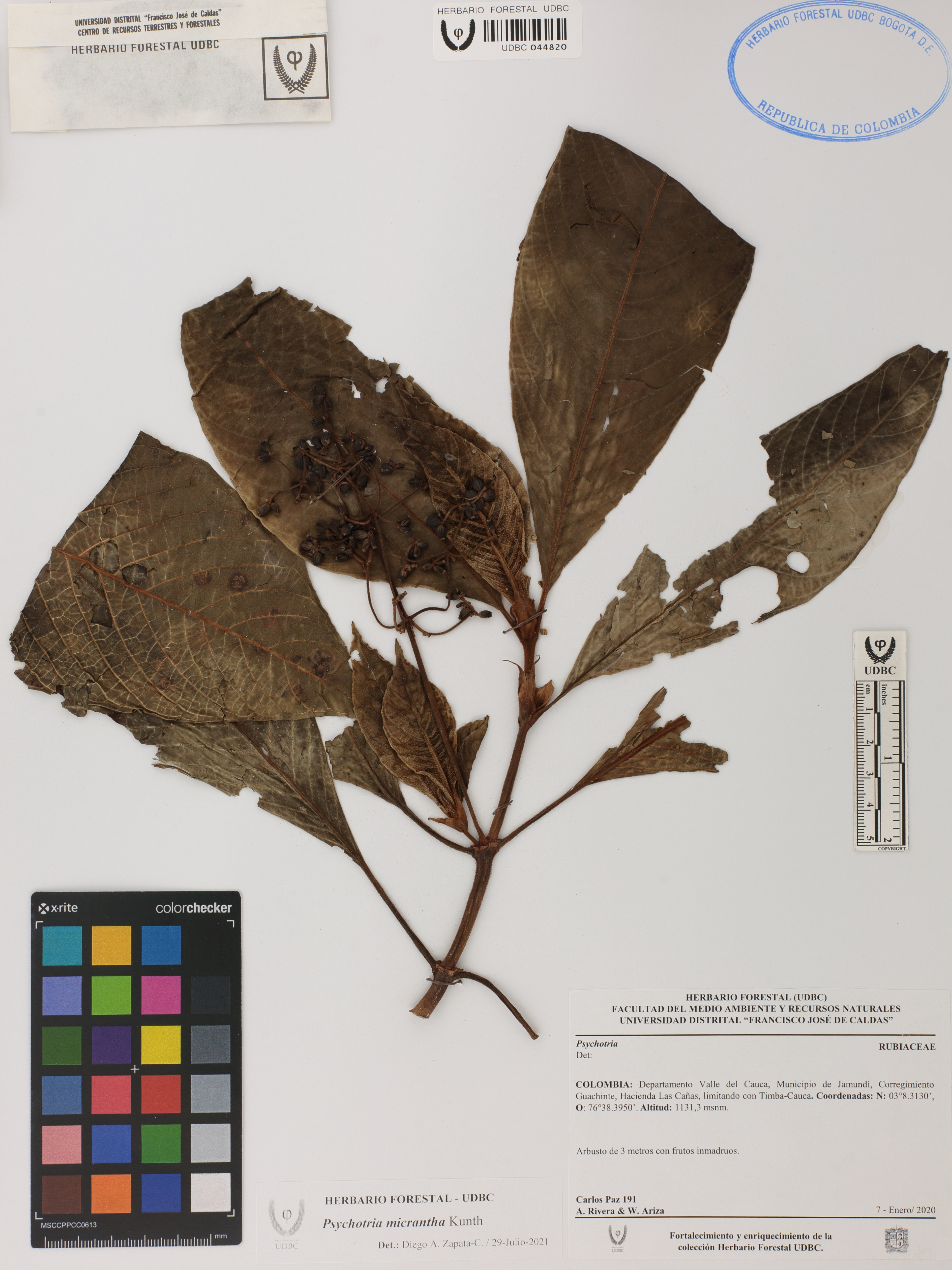 Fotografía del ejemplar Paz, C. 191, determinado como Psychotria micrantha en el año 2021