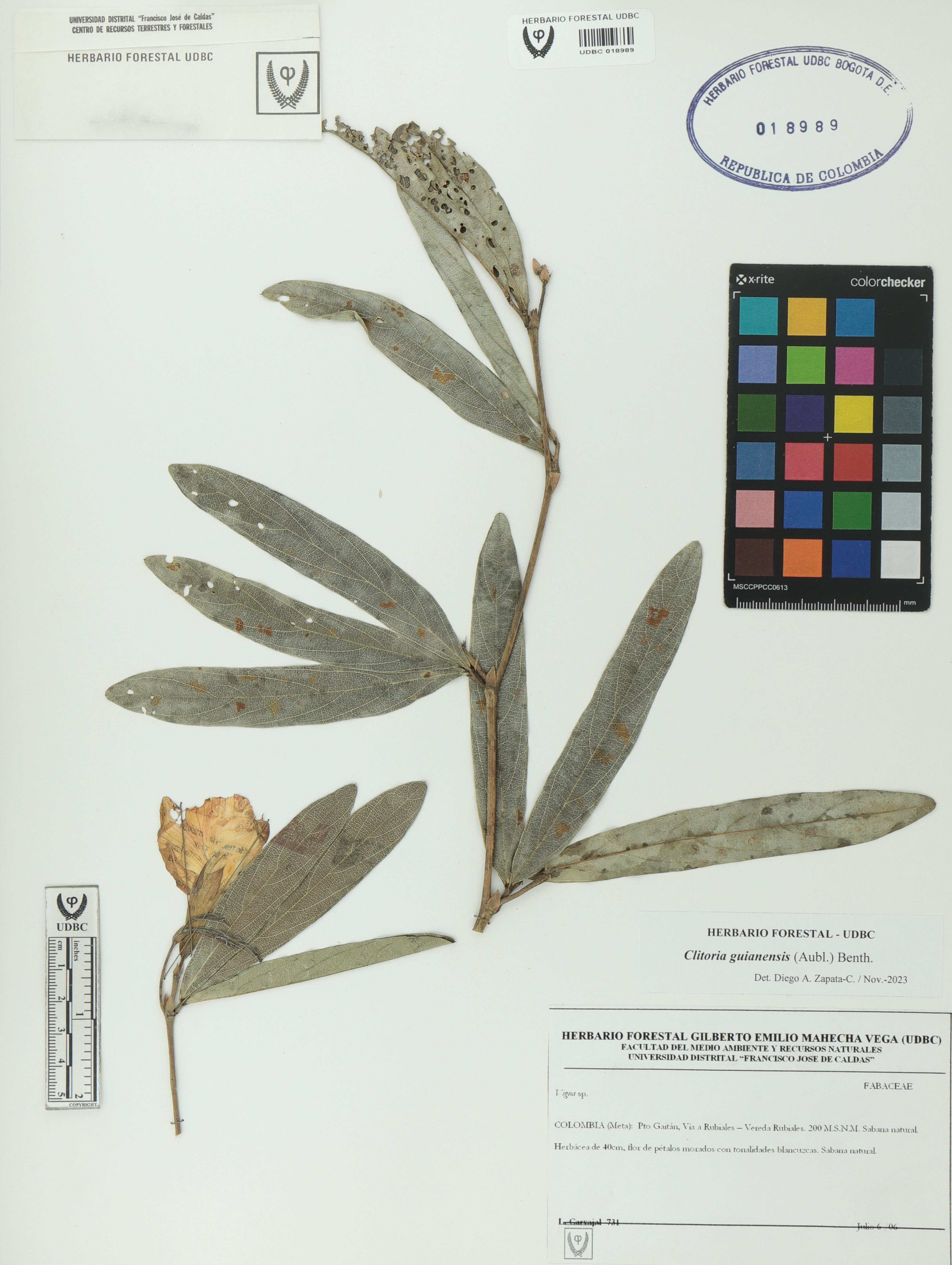 | dc.description | Fotografía del ejemplar Carvajal, L. 731, determinado como Clitoria guianensis en el año 2023 | |