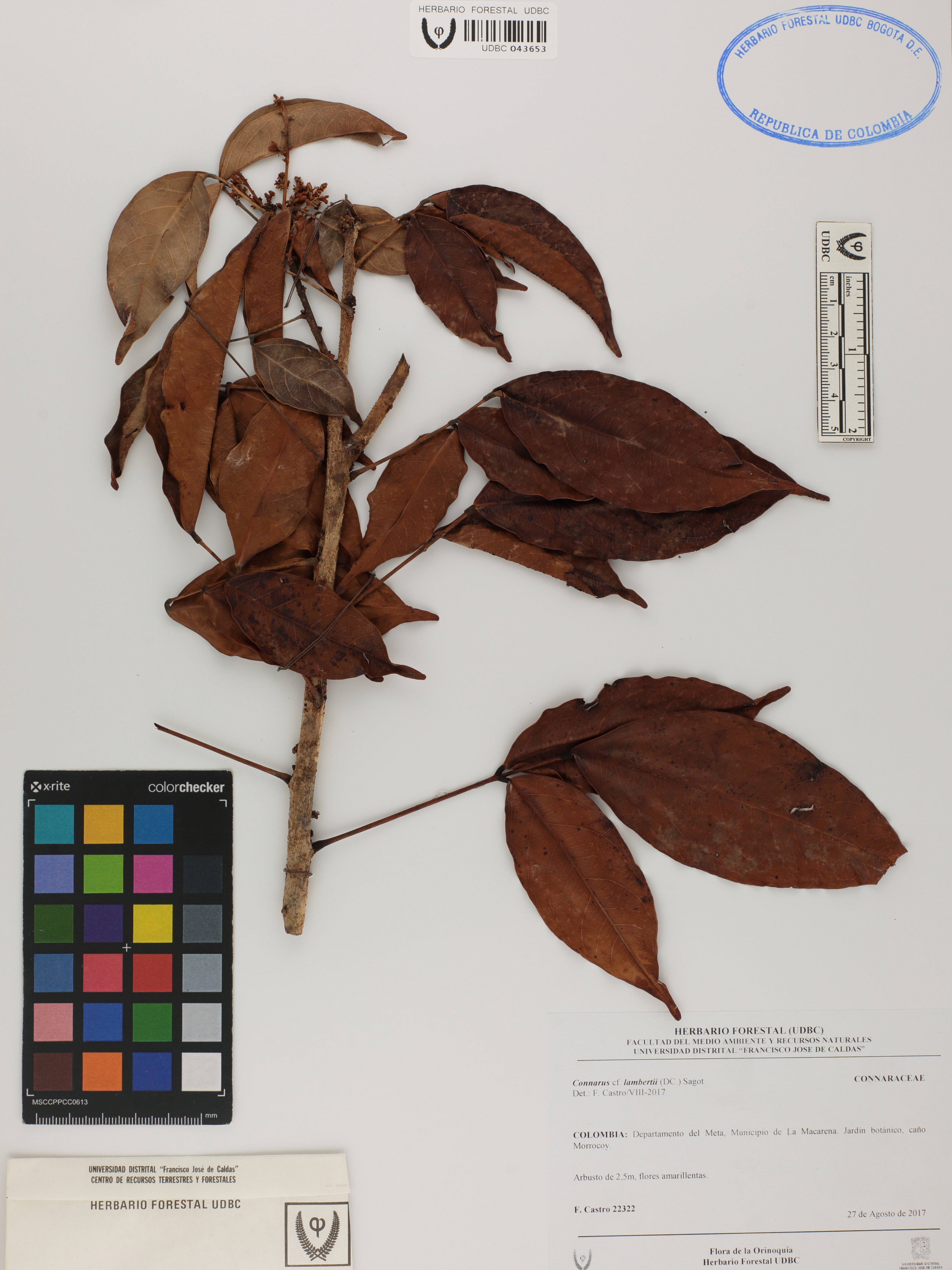 Fotografía del ejemplar Castro, F. 22322, determinado como Connarus lambertii en el año 2017