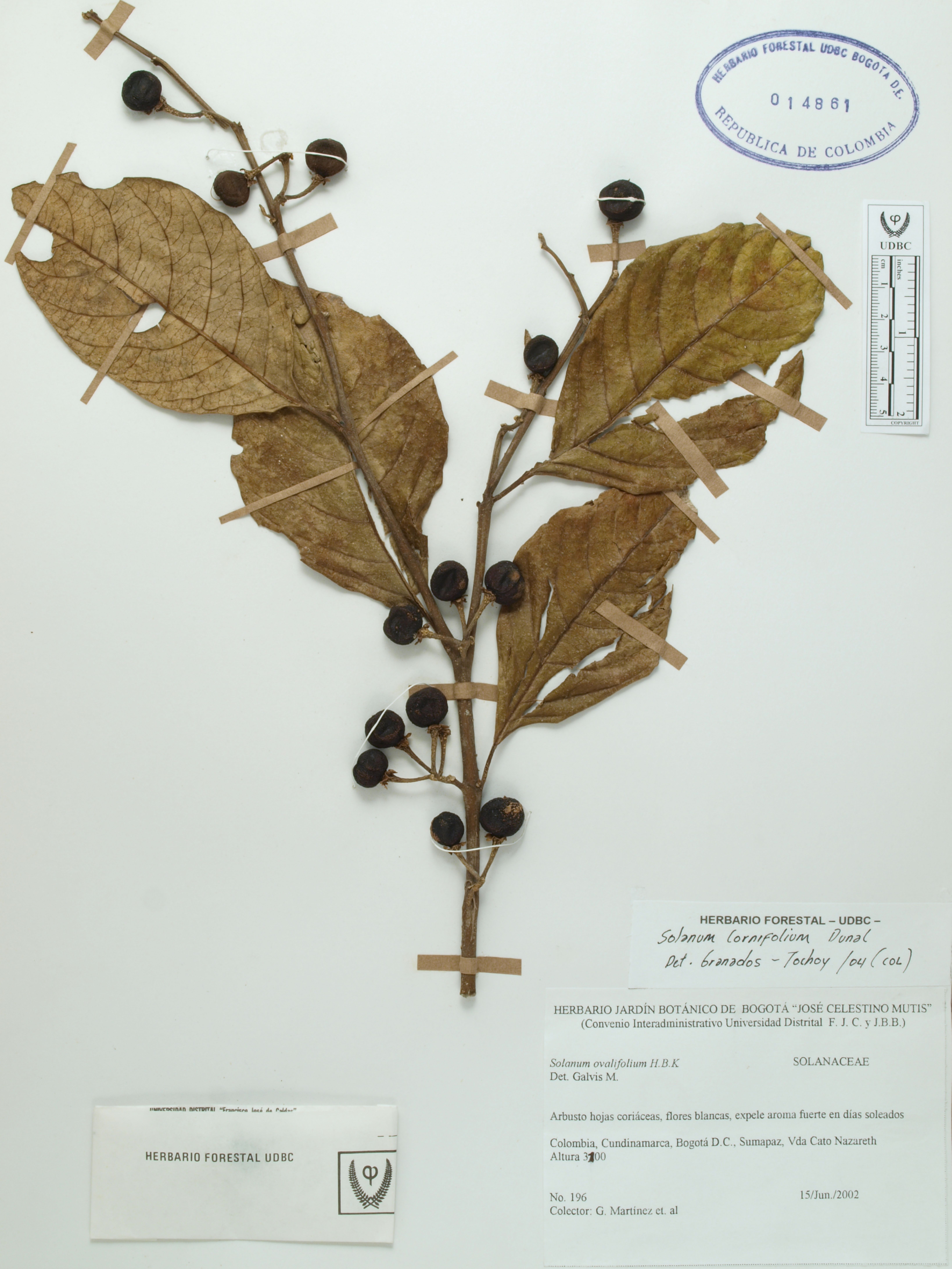 Fotografía del ejemplar Martínez, G. 196, determinado como Solanum cornifolium en el año 2004