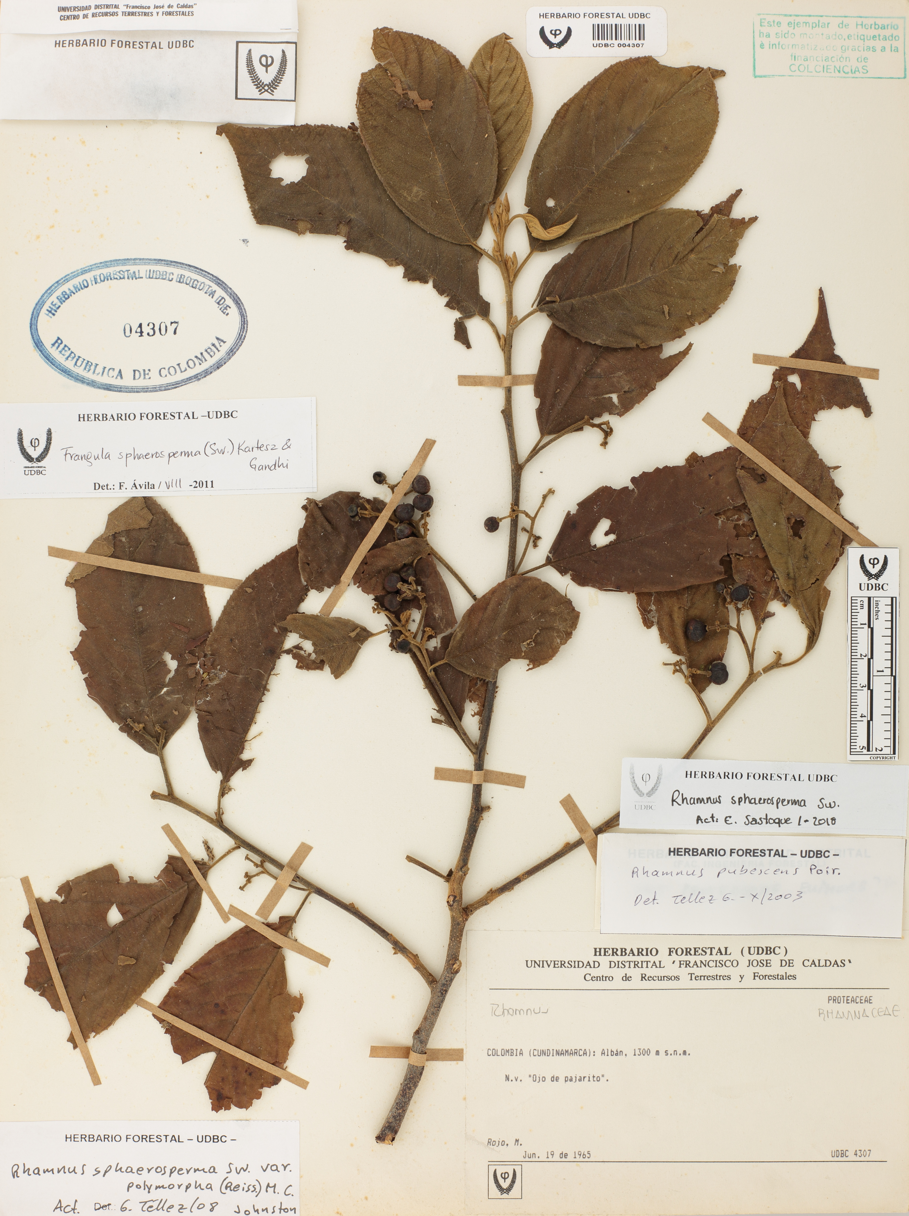 Fotografía del ejemplar Rojo, M., determinado como Frangula pubescens en el año 2003
