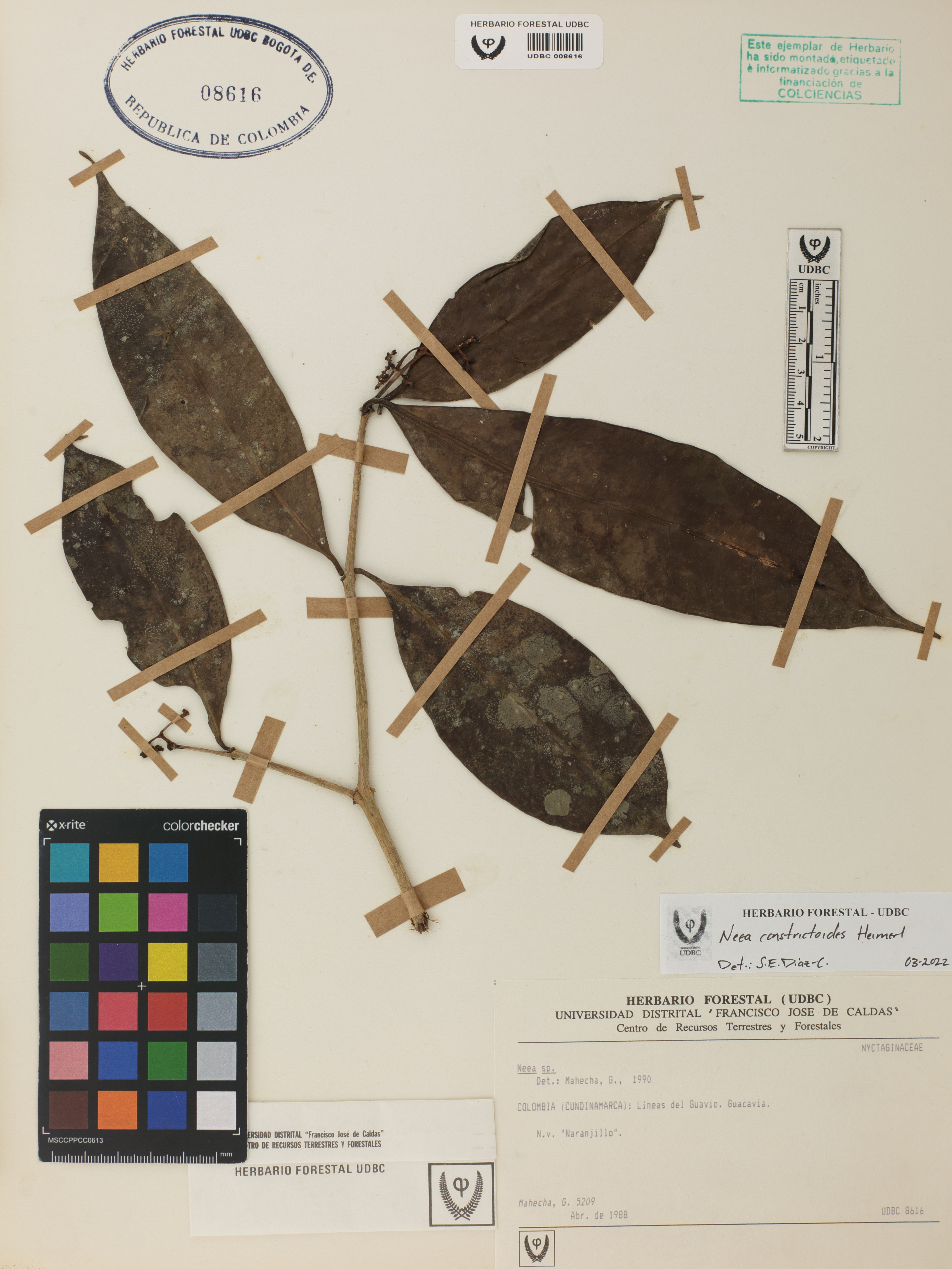 Fotografía del ejemplar Mahecha, G. 5209, determinado como Neea constrictoides en el año 2022