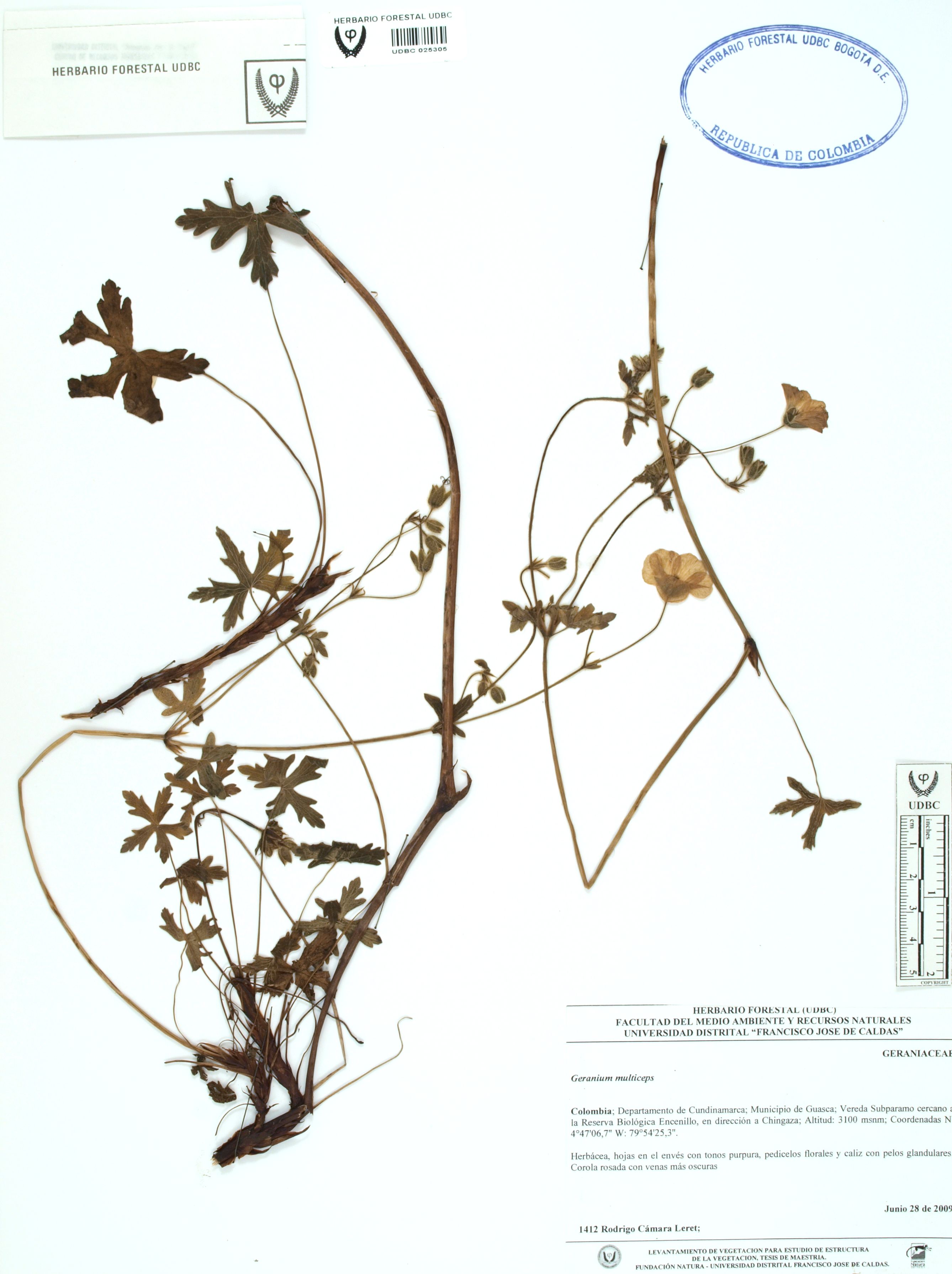 Fotografía del ejemplar Cámara, R. 1412, determinado como Geranium multiceps