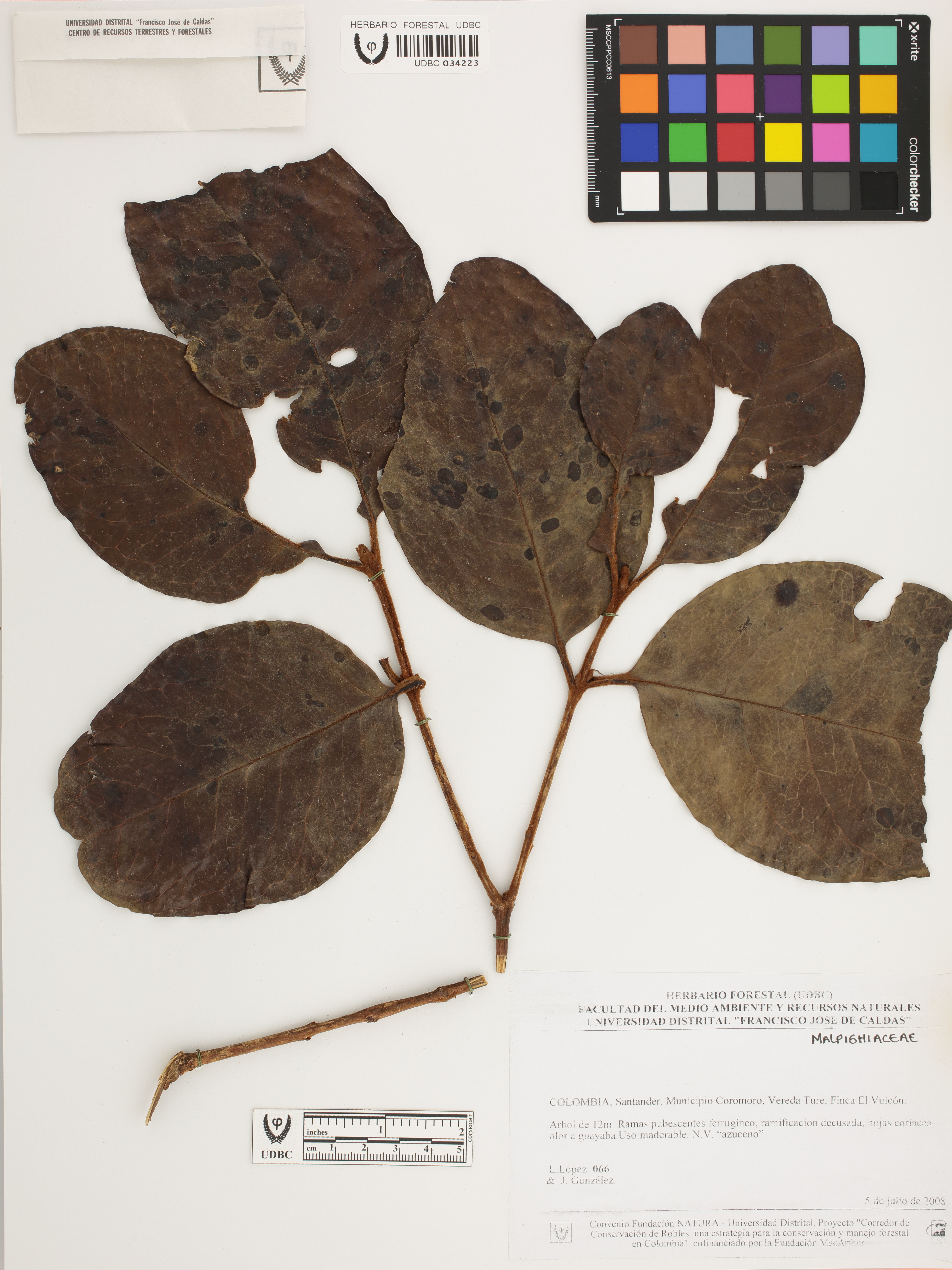 Fotografía del ejemplar López, L. 66, determinado como Malpighiaceae