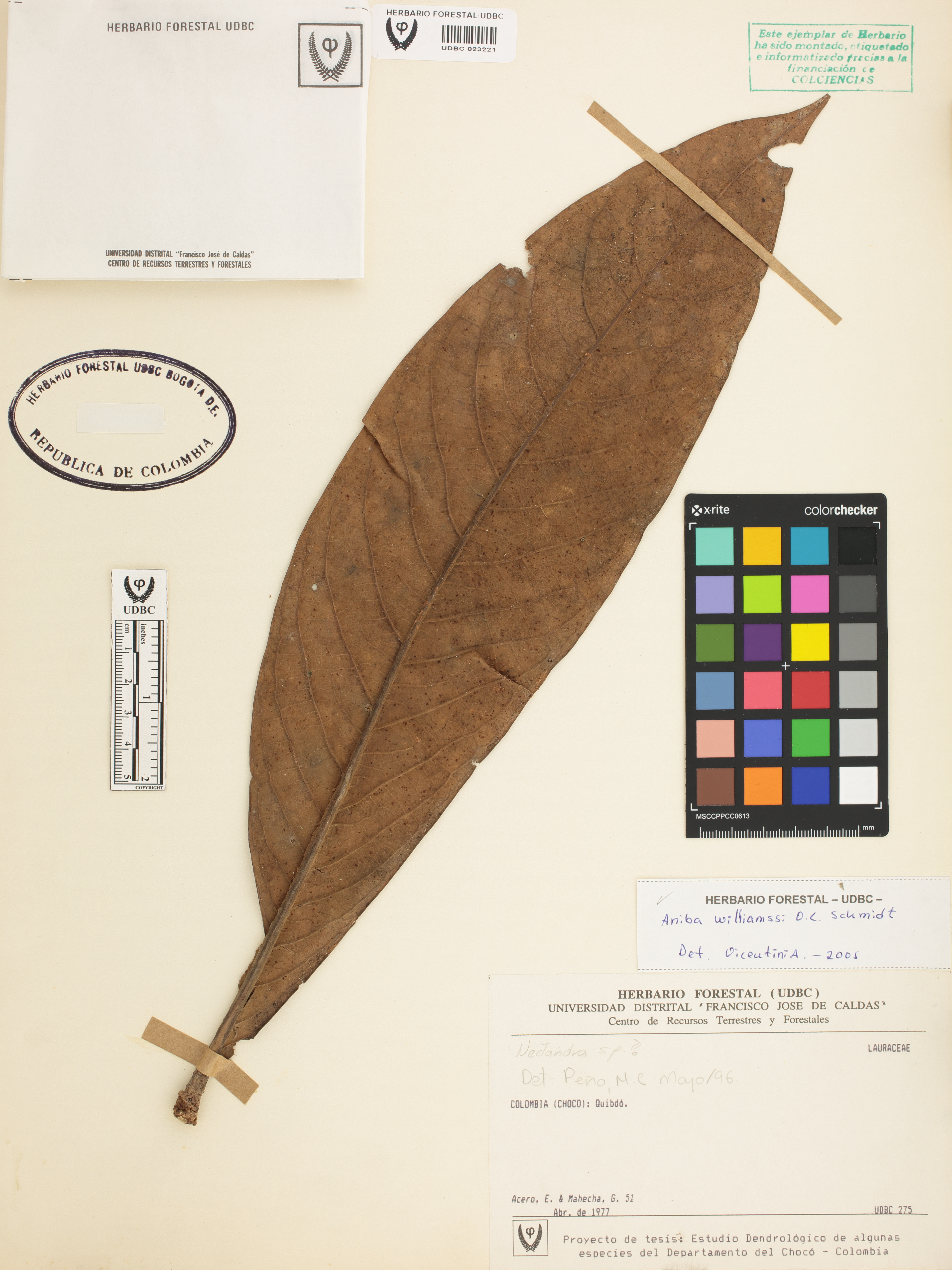 Fotografía del ejemplar Acero, E. 51, determinado como Aniba williamsii en el año 2005