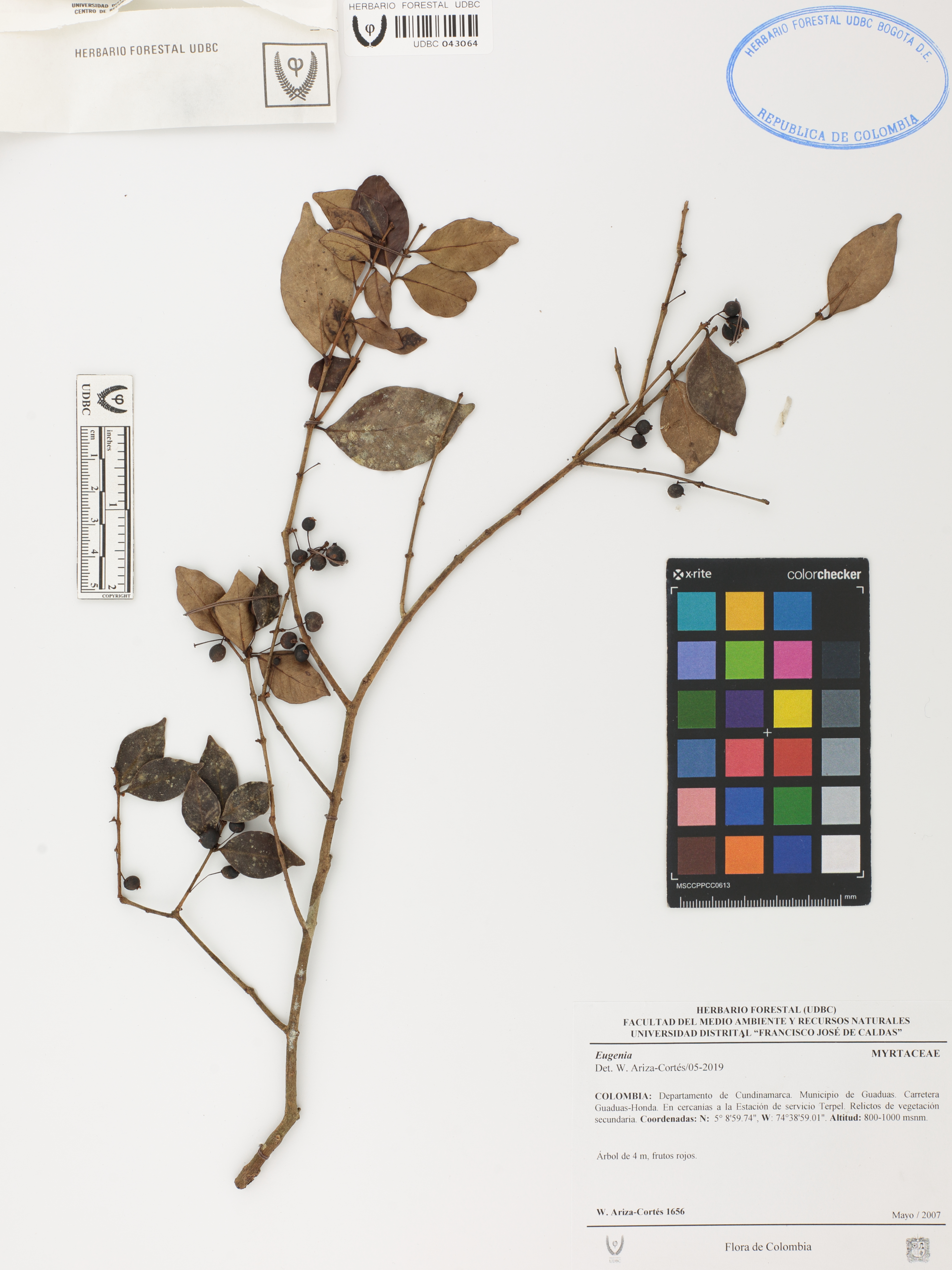Fotografía del ejemplar Ariza-C., W. 1656, determinado como Eugenia sp. en el año 2019