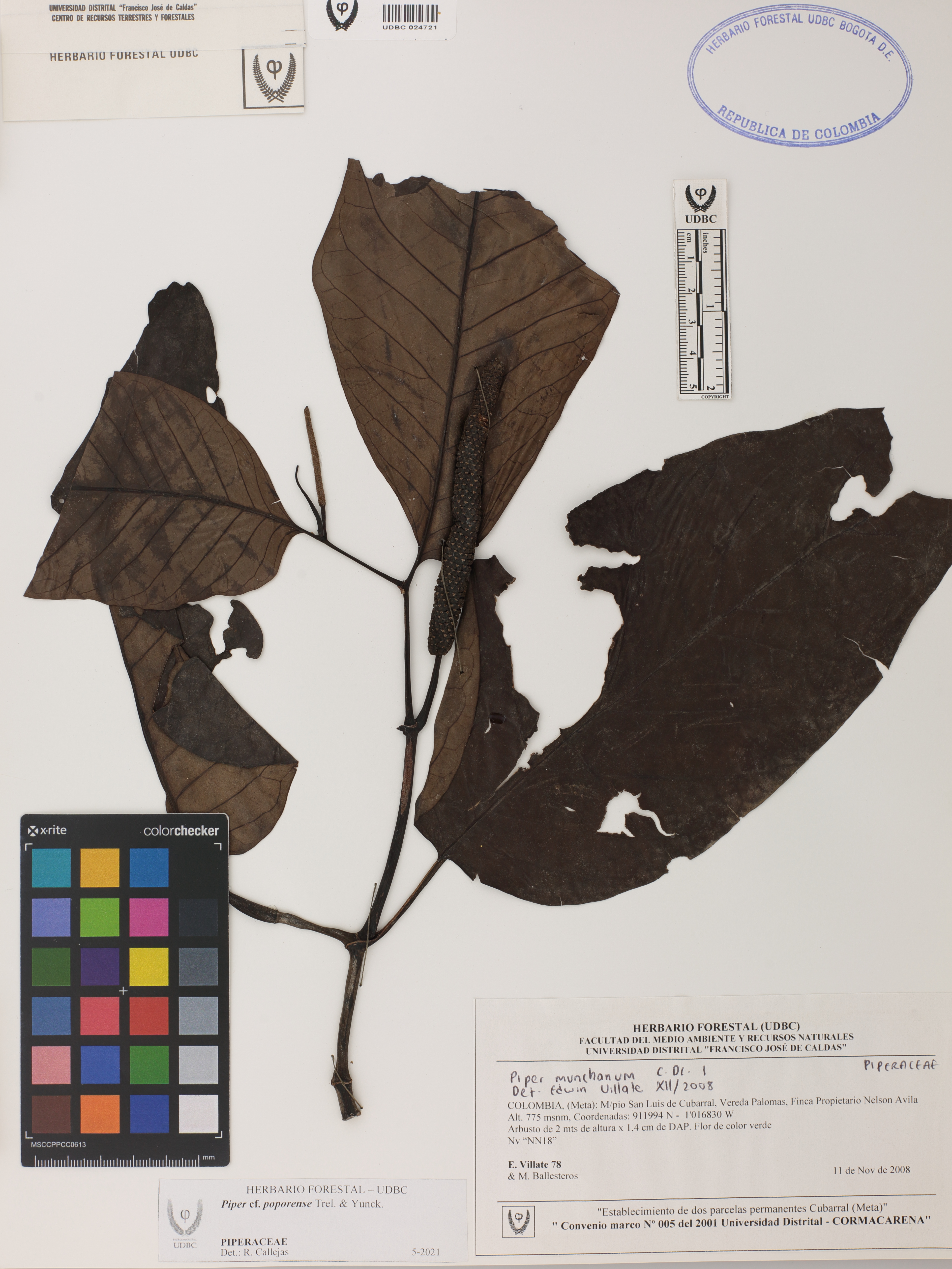 Fotografía del ejemplar Villate, E. 78, determinado como Piper poporense en el año 2021