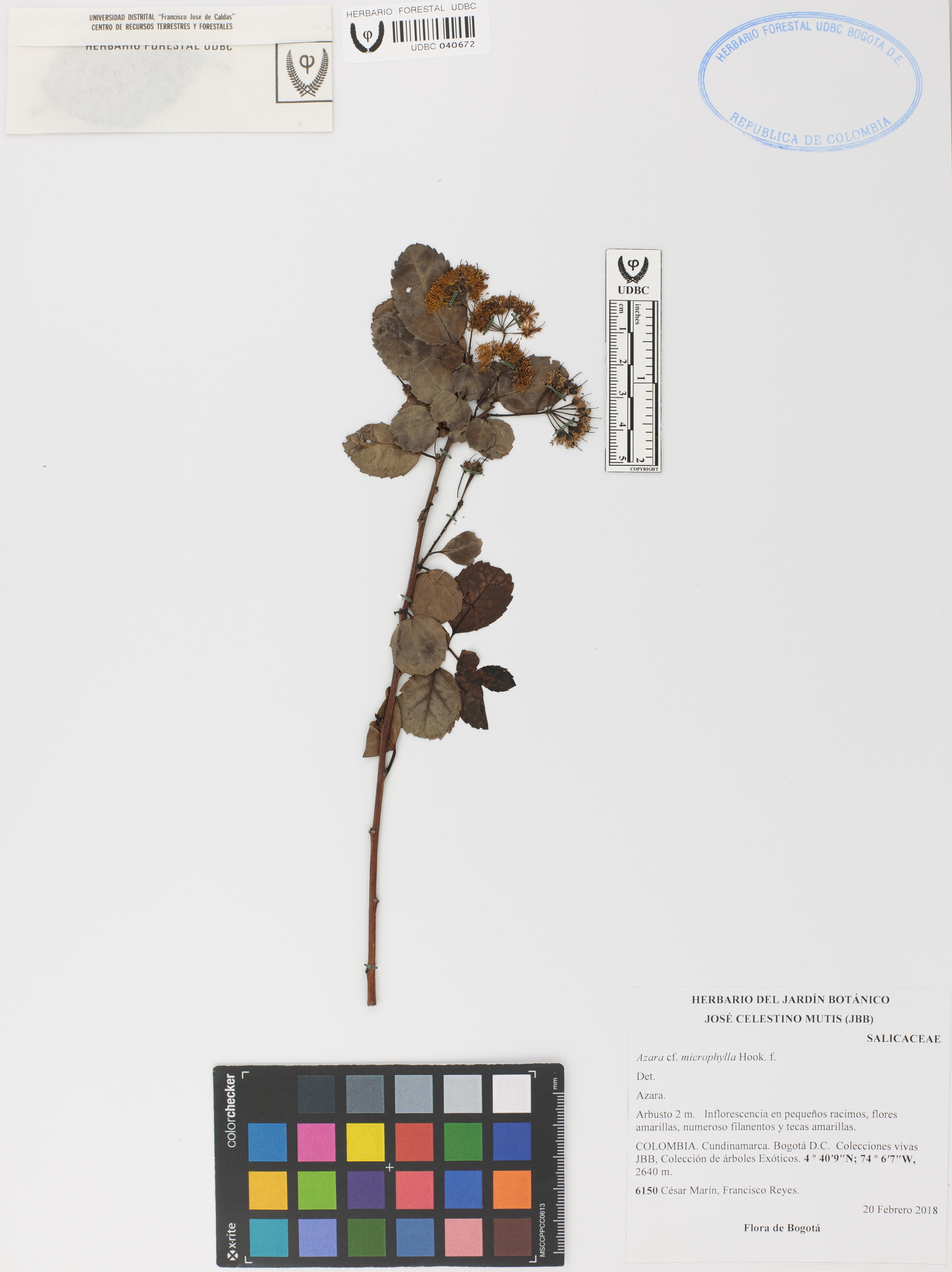 Fotografía del ejemplar Marín, C. 6150, determinado como Azara microphylla