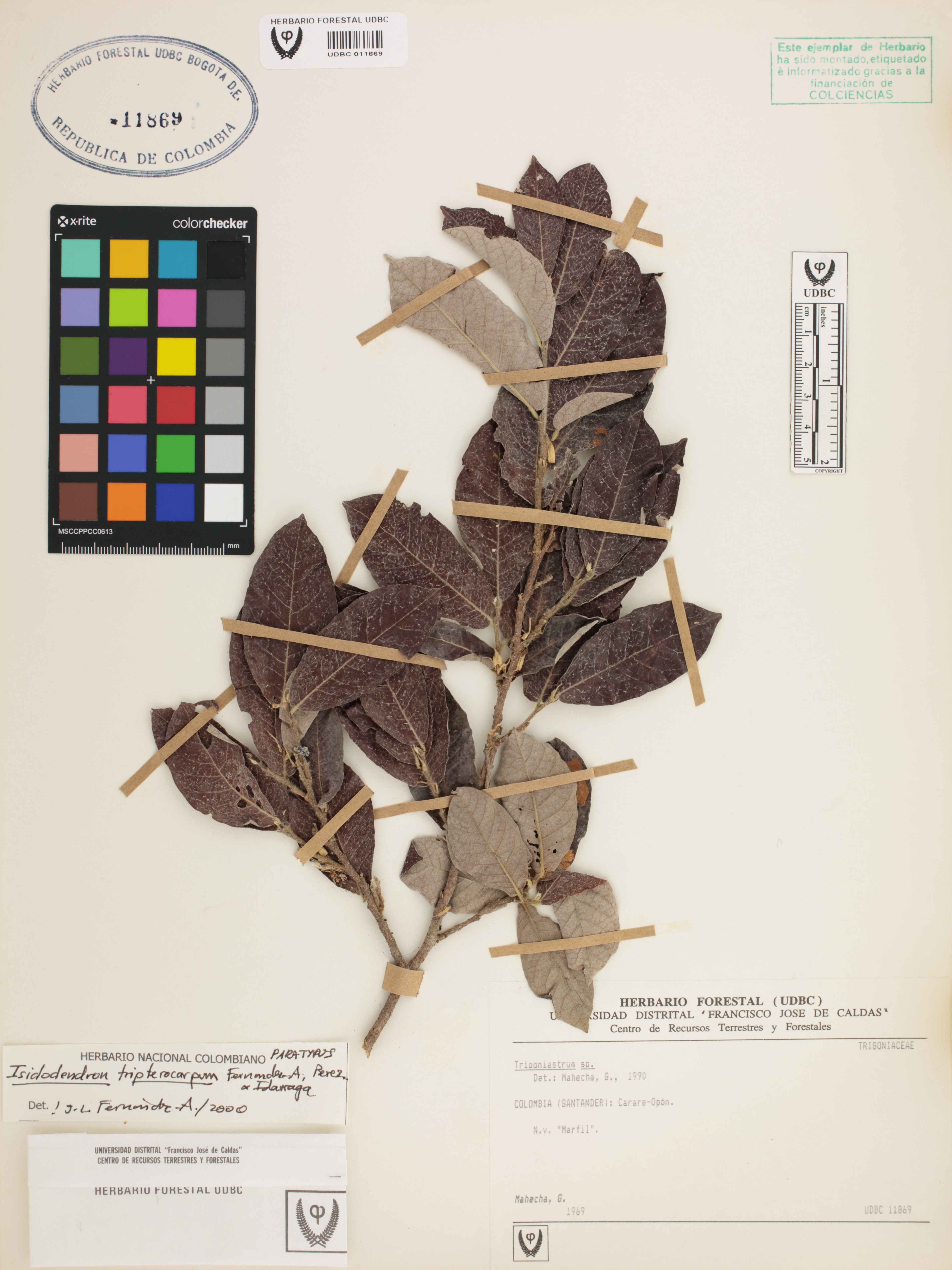 Fotografía del ejemplar Mahecha, G., Paratipo de Isidodendron tripterocarpum