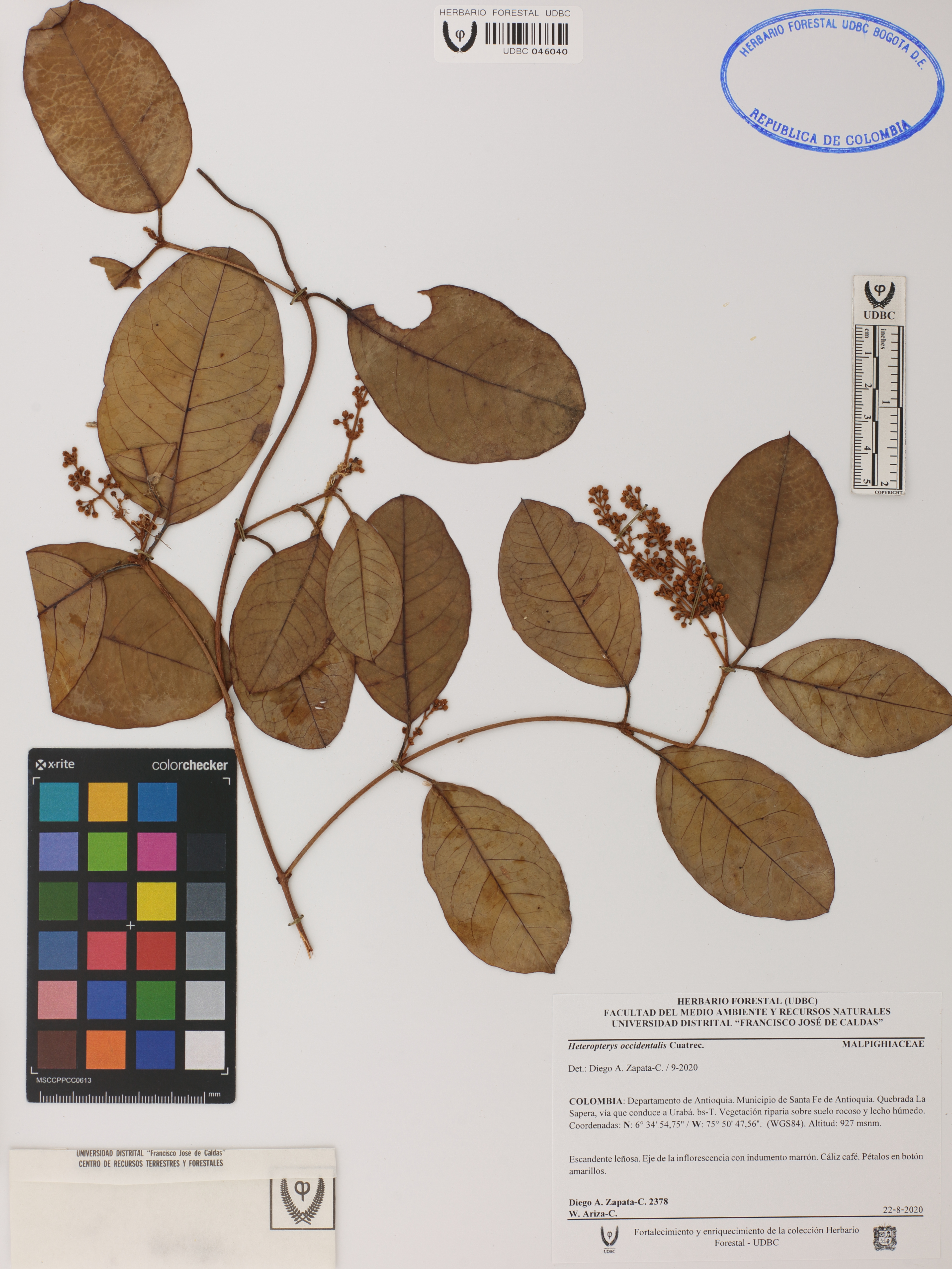 Fotografía del ejemplar Zapata-C., D. 2378, determinado como Heteropterys occidentalis en el año 2020