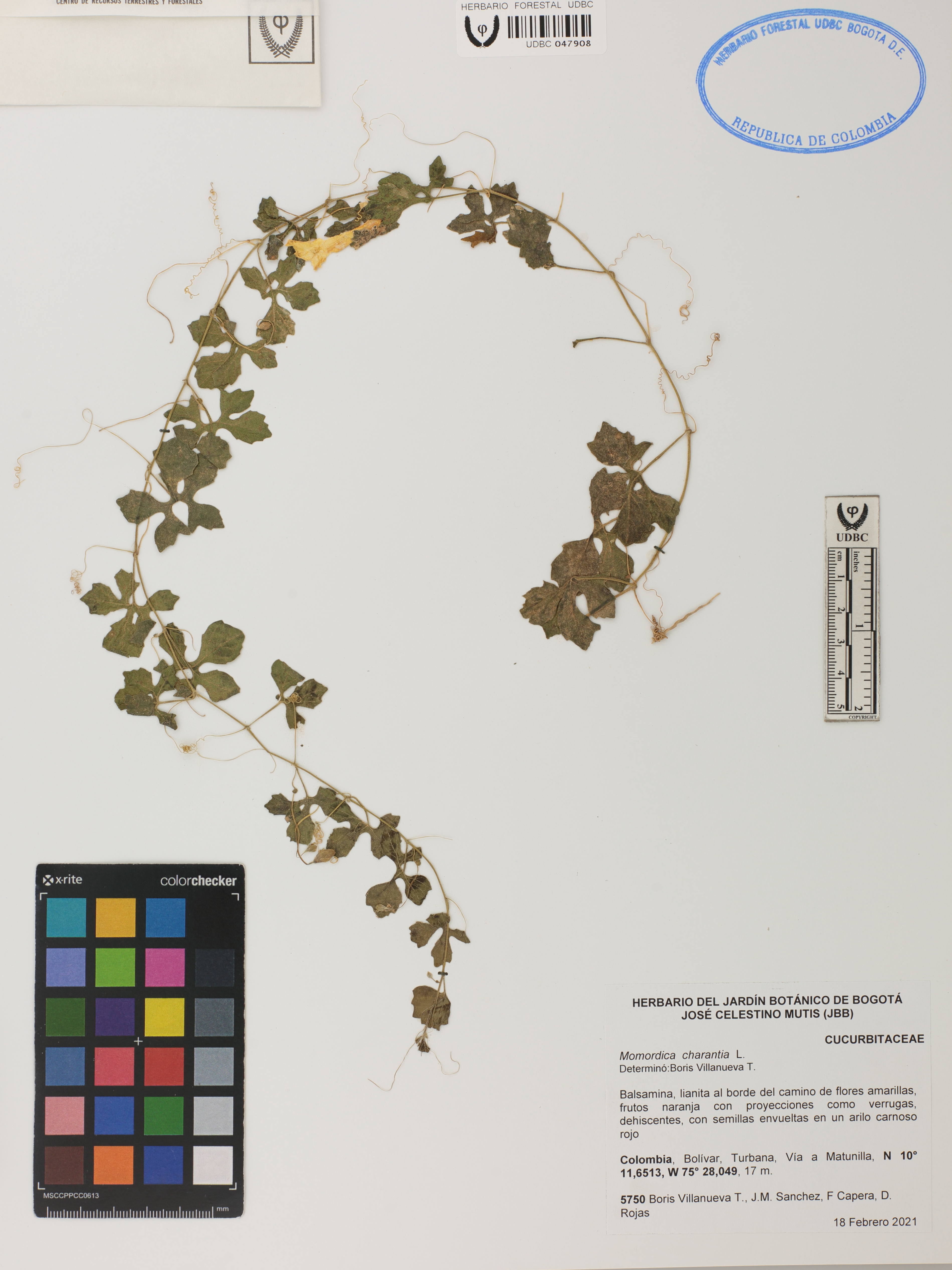 Fotografía del ejemplar Villanueva, B. 5750, determinado como Momordica charantia en el año 2021