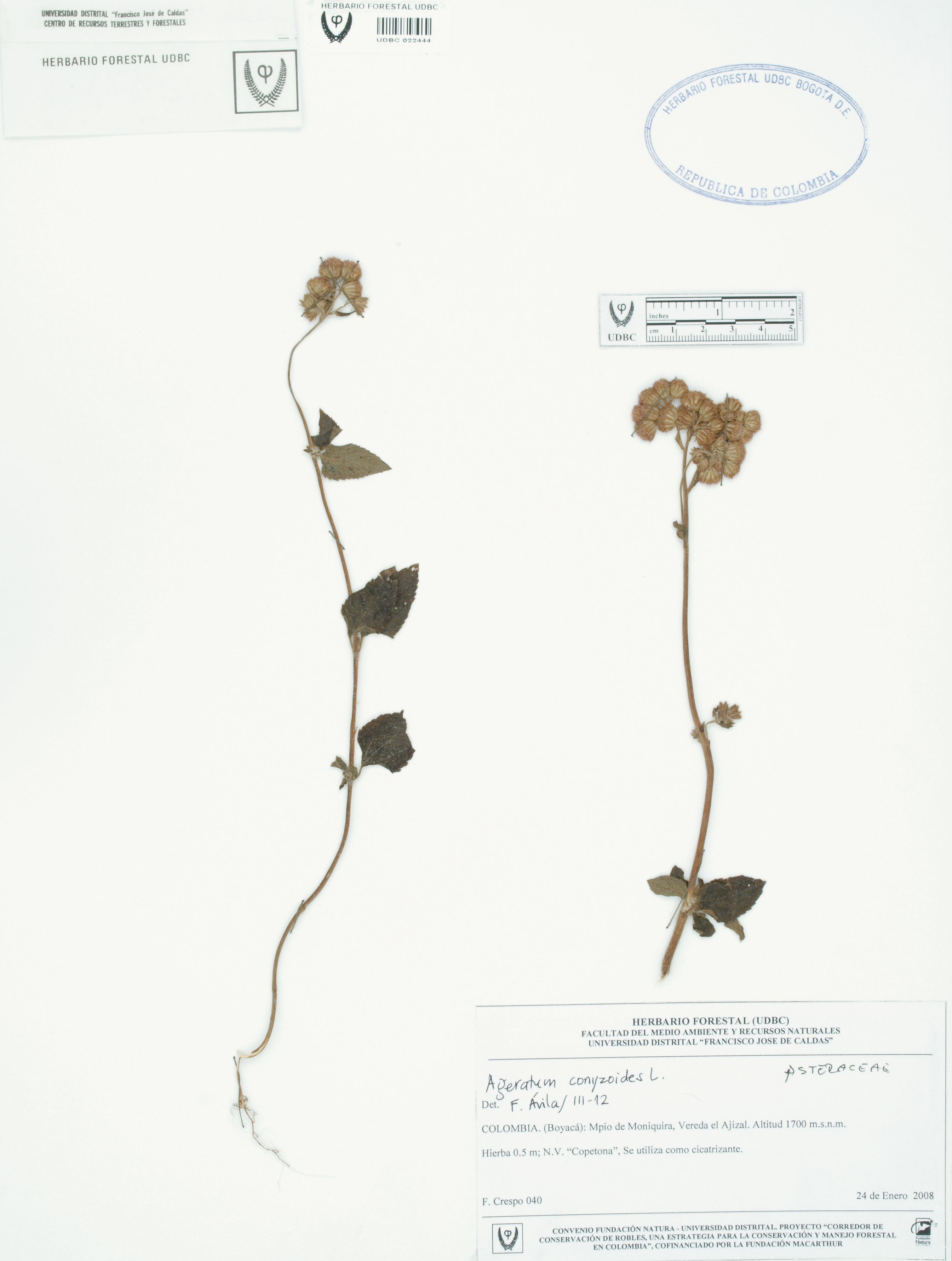 Fotografía del ejemplar Crespo, F. 40, determinado como Ageratum conyzoides en el año 2012