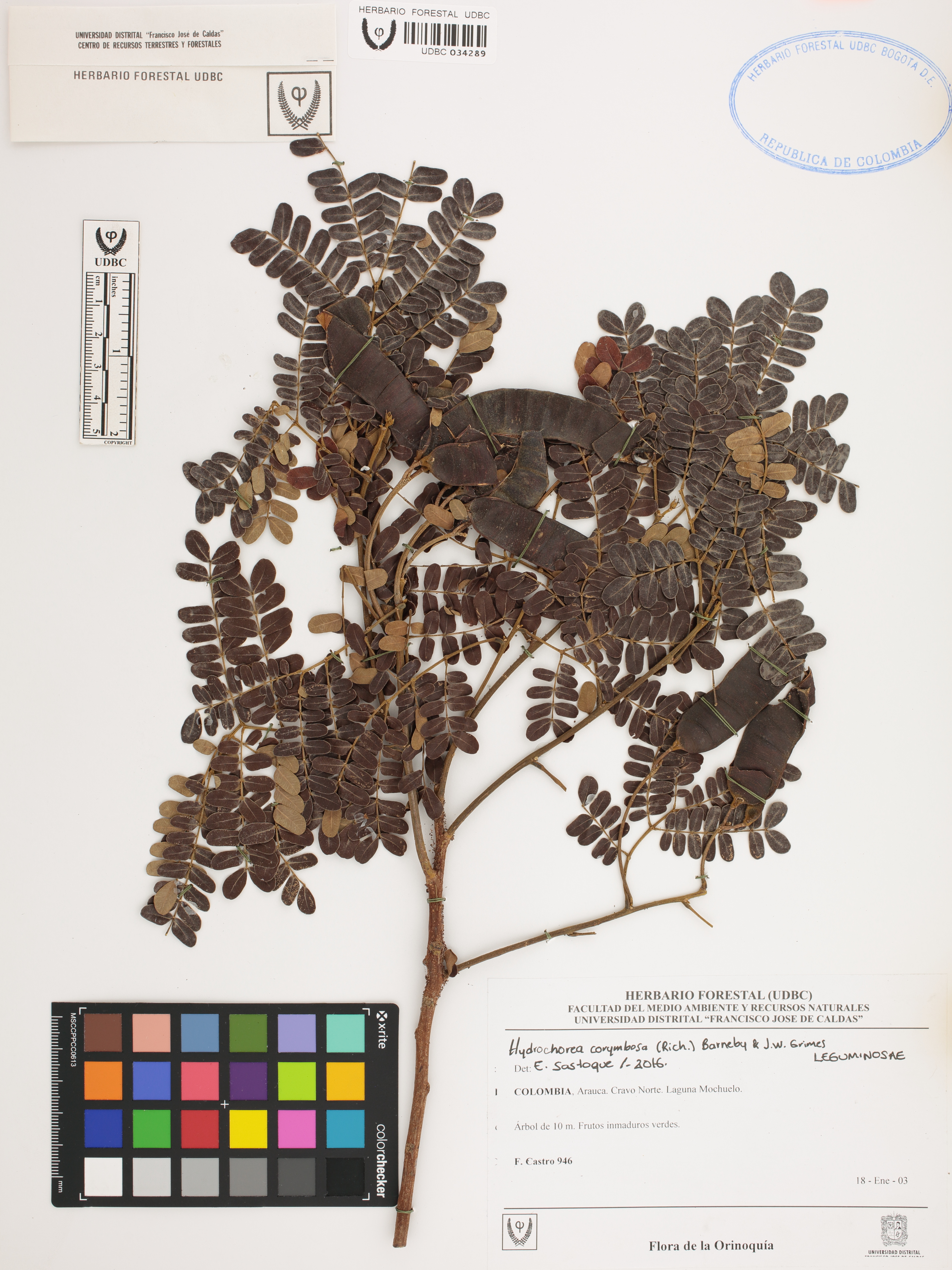 Fotografía del ejemplar Castro, F. 946, determinado como Hydrochorea corymbosa en el año 2016