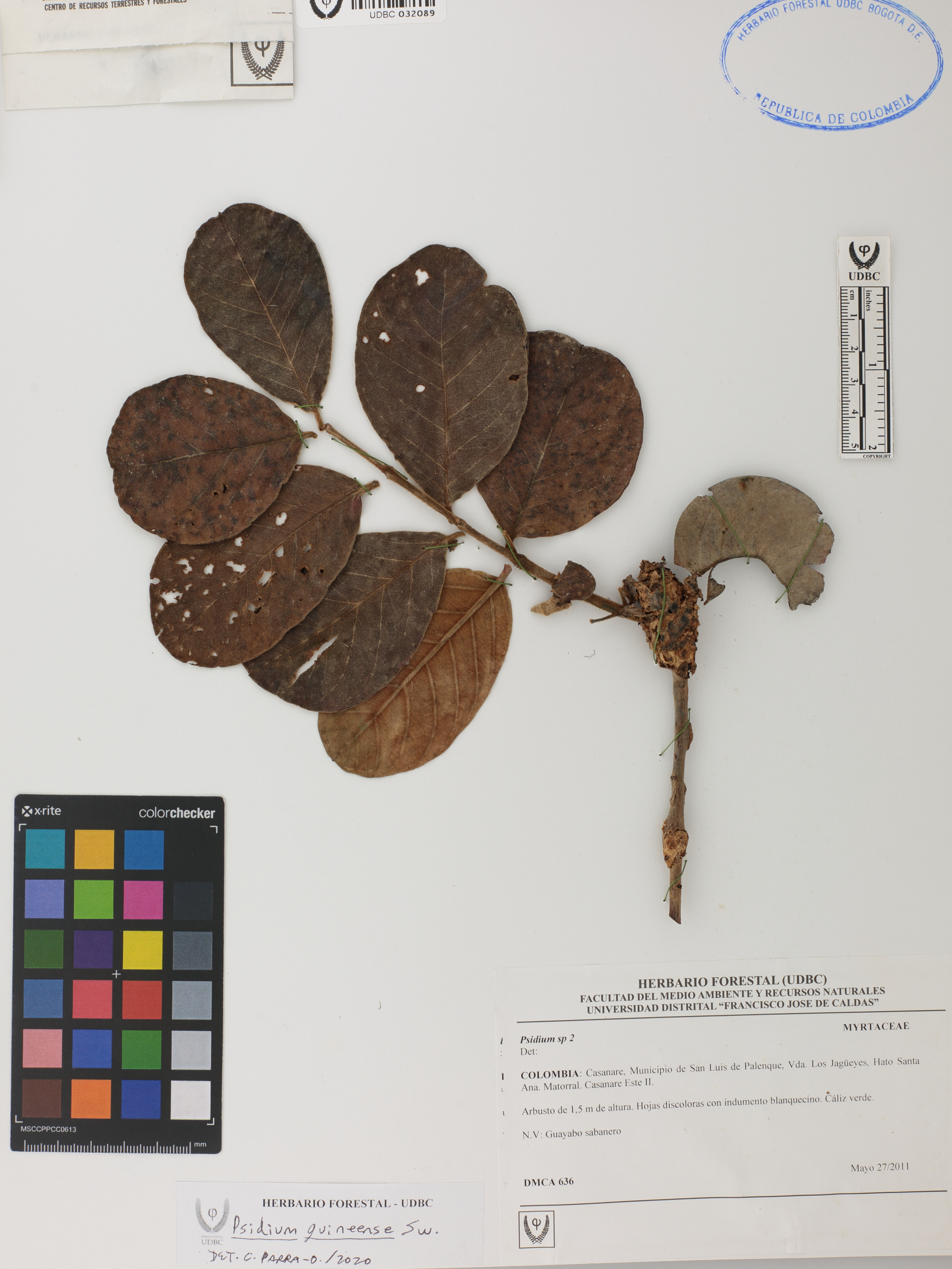Fotografía del ejemplar SD 636, determinado como Psidium guineense en el año 2020