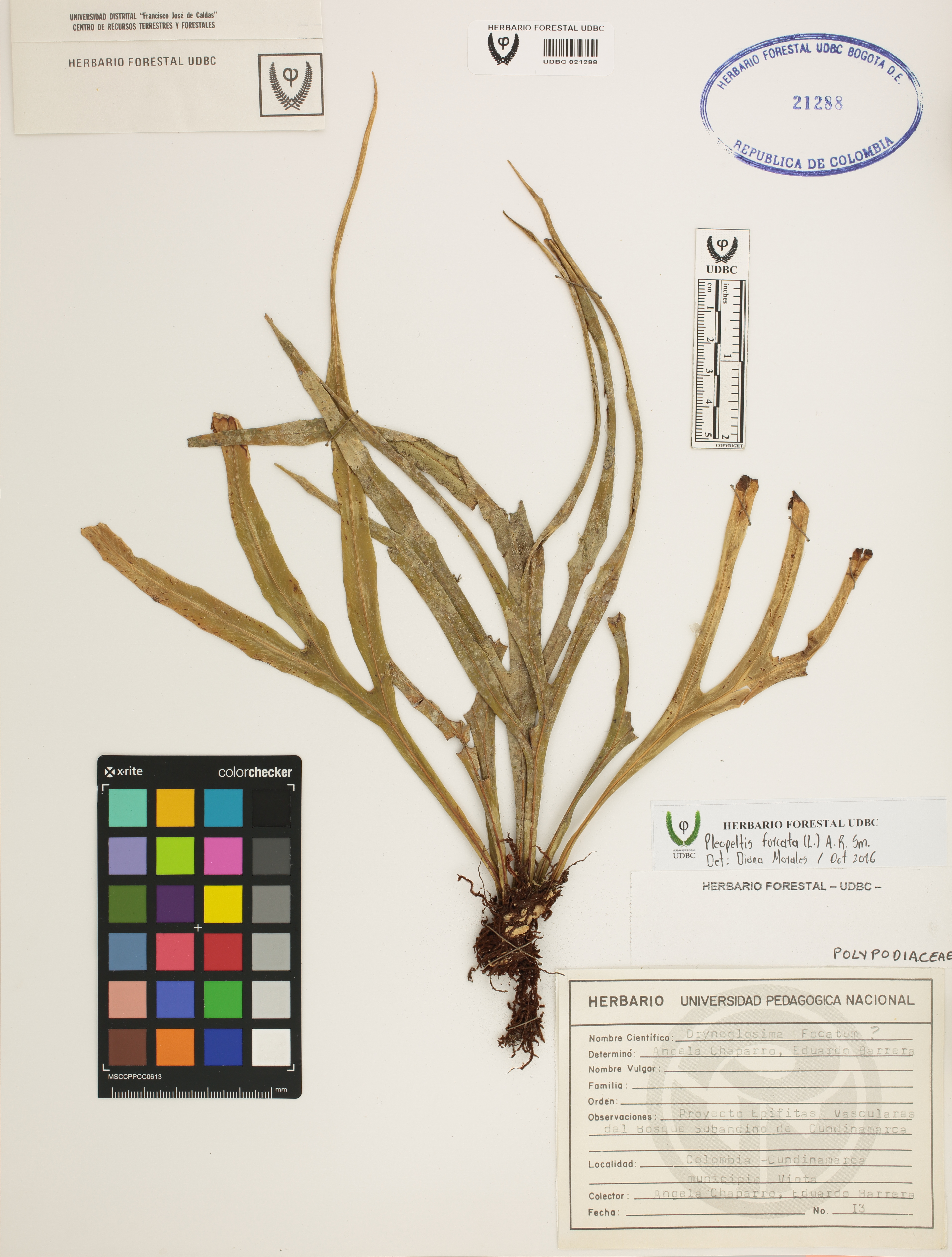 | dc.description | Fotografía del ejemplar Chaparro, A. 13, determinado como Pleopeltis furcata en el año 2016 | |