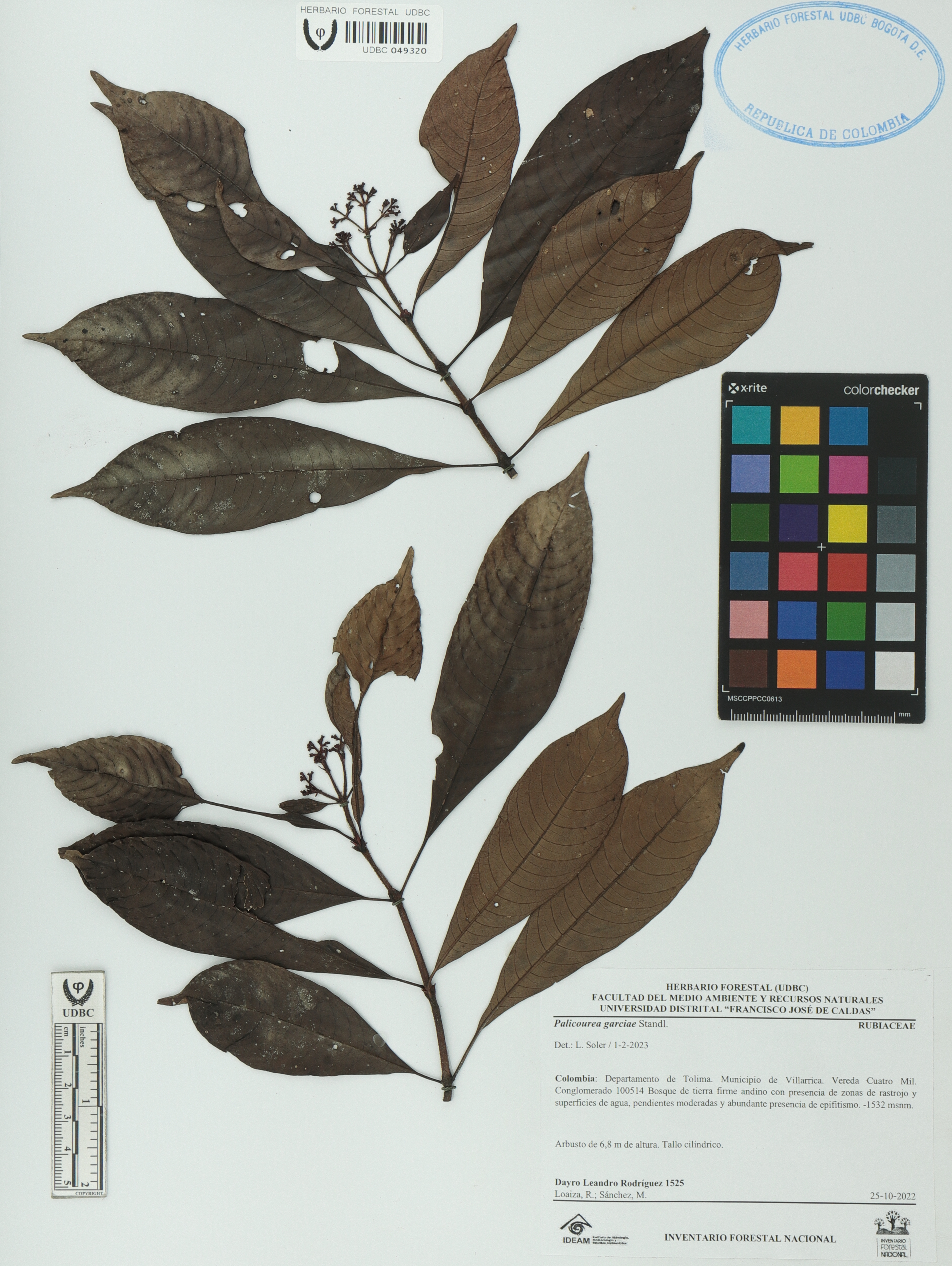 Fotografía del ejemplar Rodríguez-Duque, D. 1525, determinado como Palicourea garciae en el año 2023