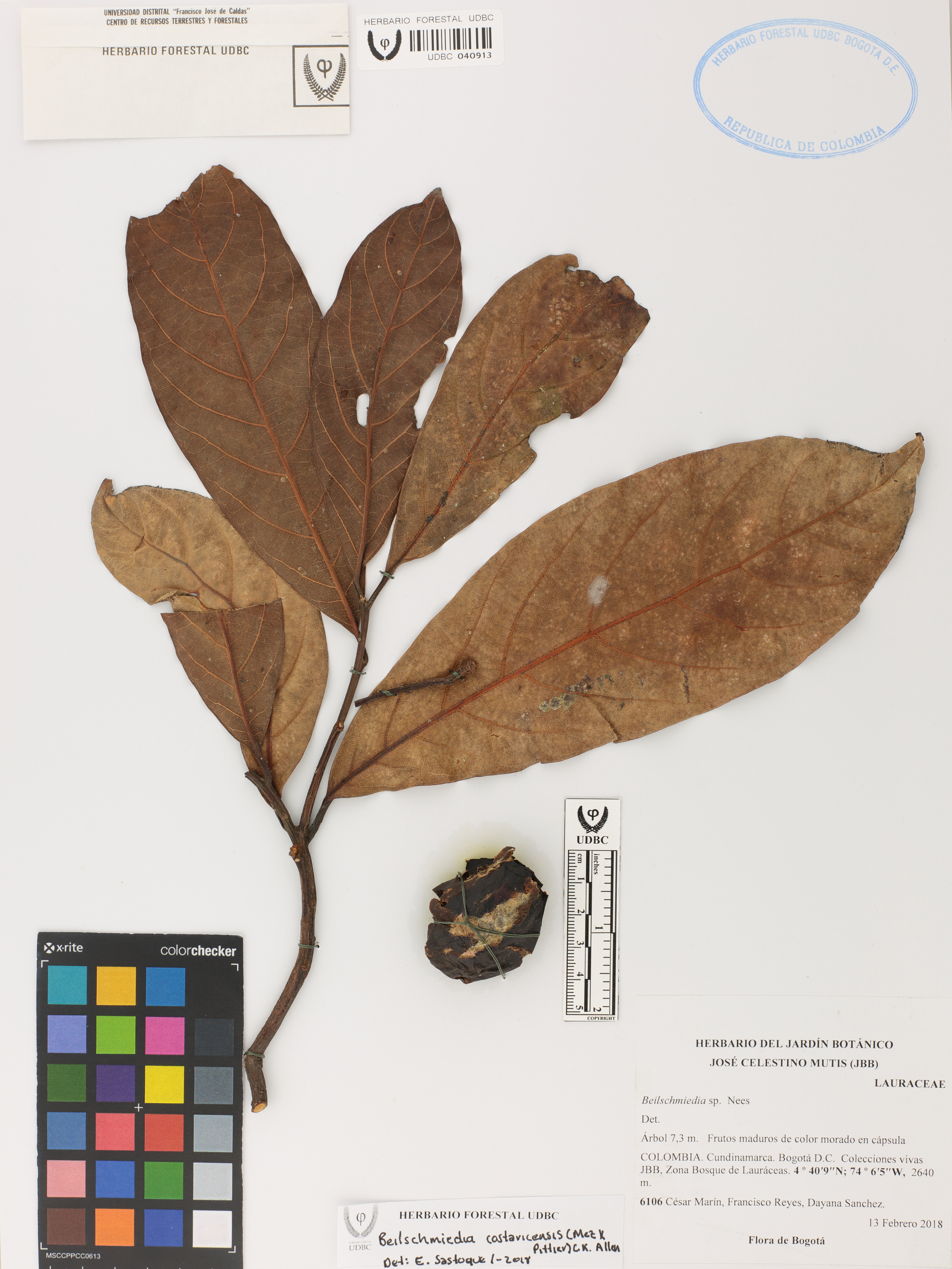 Fotografía del ejemplar Marín, C. 6106, determinado como Beilschmiedia costaricensis en el año 2018