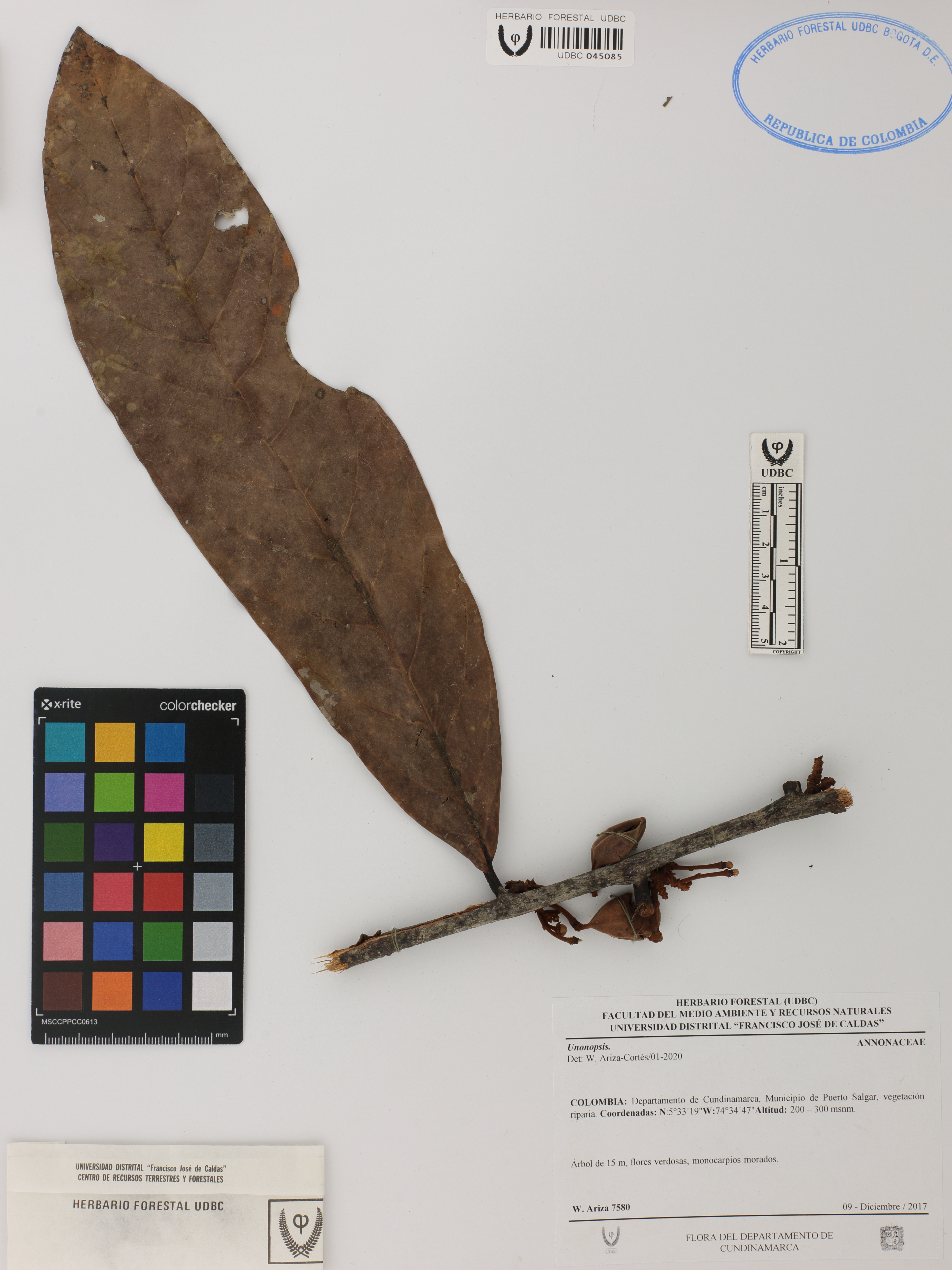 Fotografía del ejemplar Ariza-Cortés, W. 7580, determinado como Unonopsis sp. en el año 2020