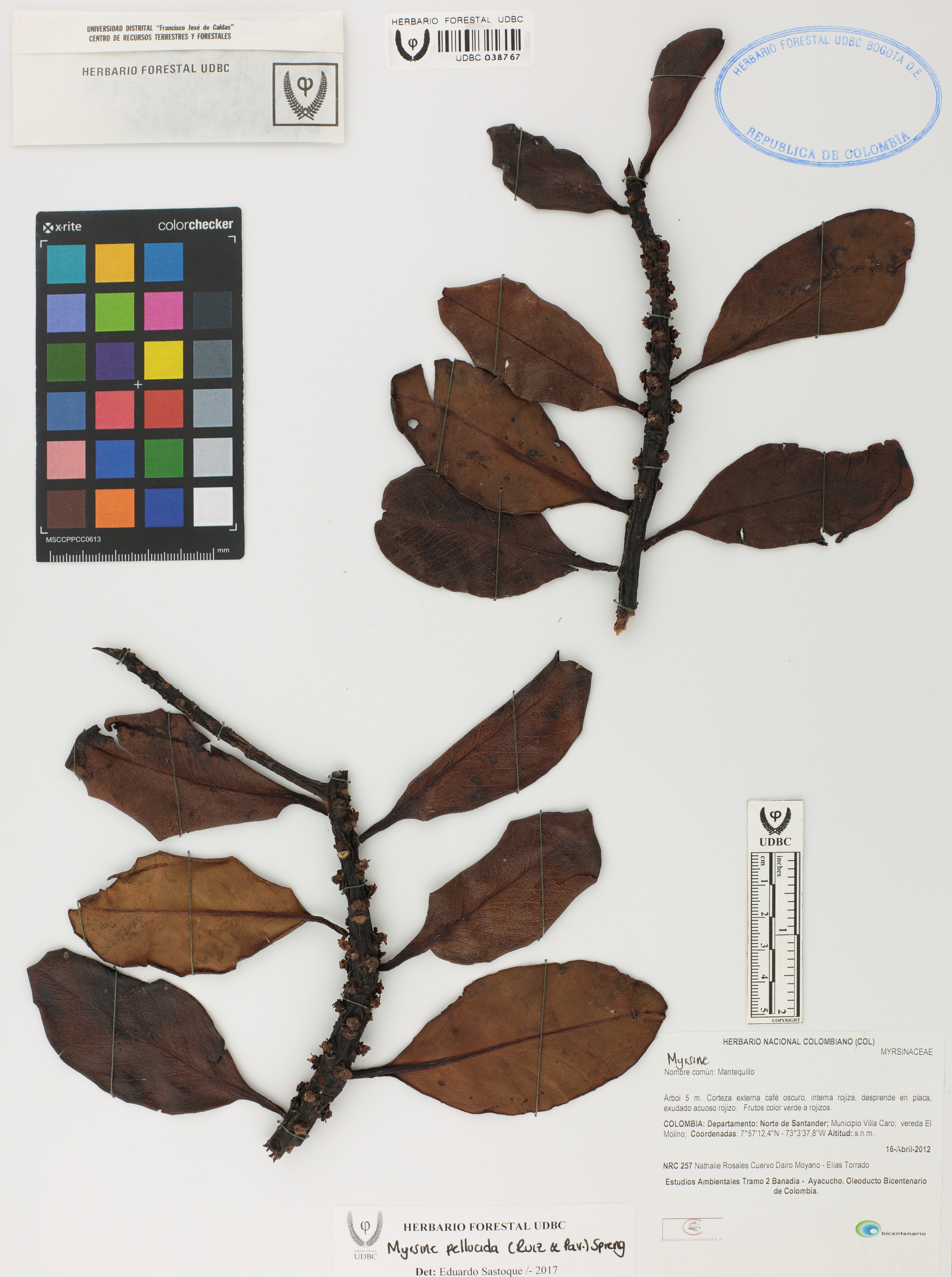 Fotografía del ejemplar Rosales, N. 257, determinado como Myrsine pellucida en el año 2017