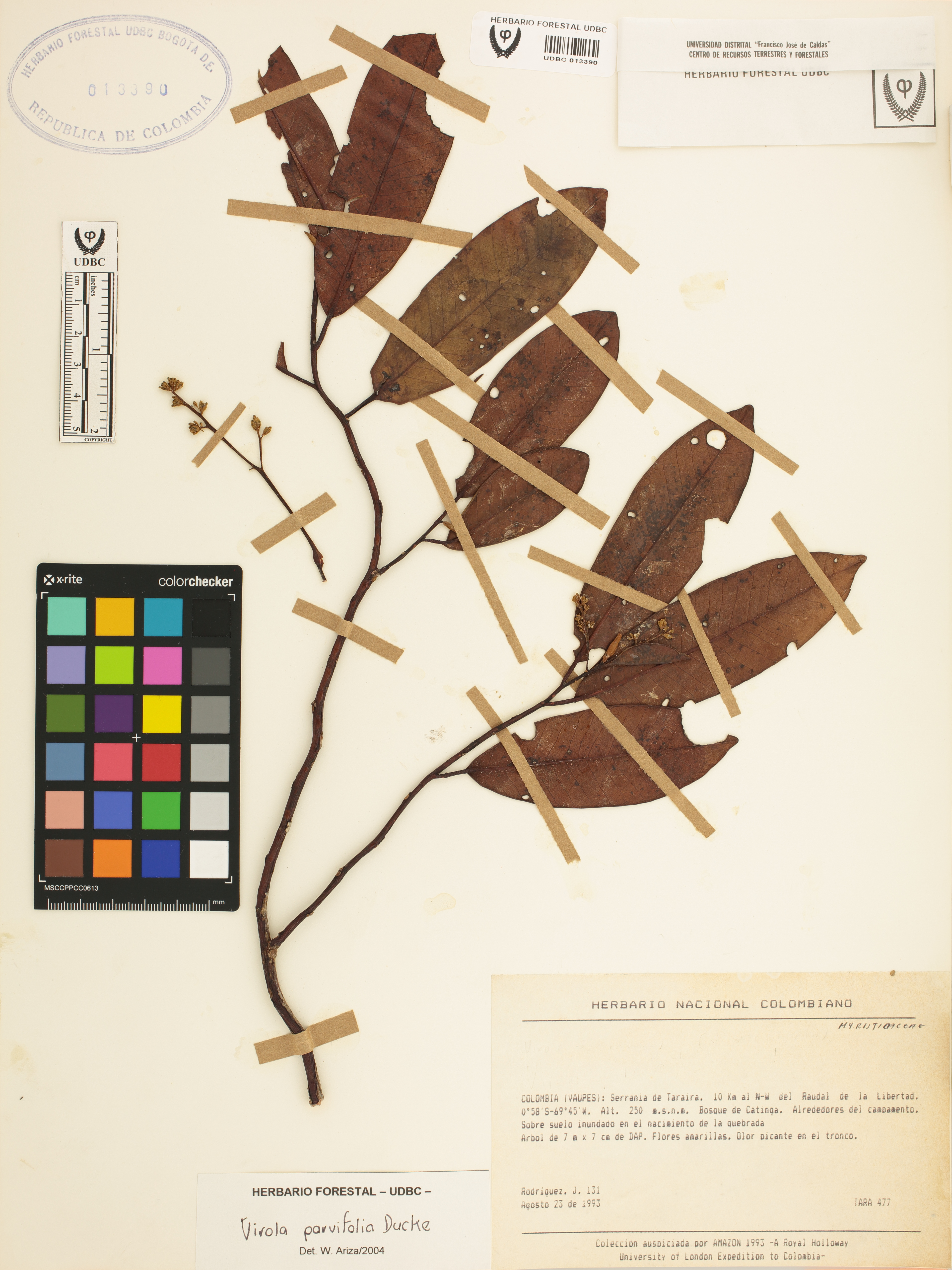 | dc.description | Fotografía del ejemplar Rodríguez, J. 131, determinado como Virola parvifolia en el año 2004 | |