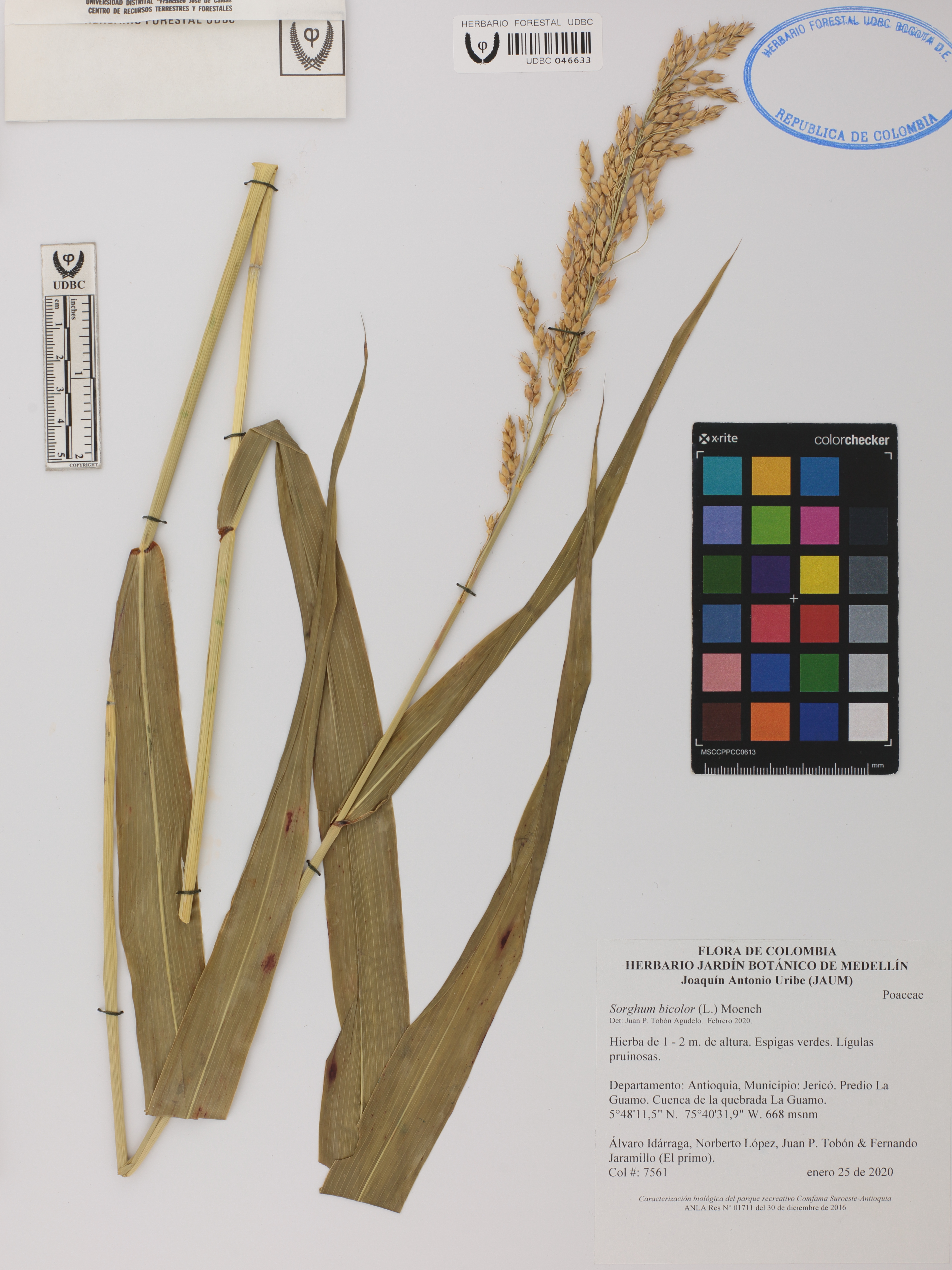 Fotografía del ejemplar Idárraga, Á. 7561, determinado como Sorghum bicolor en el año 2020