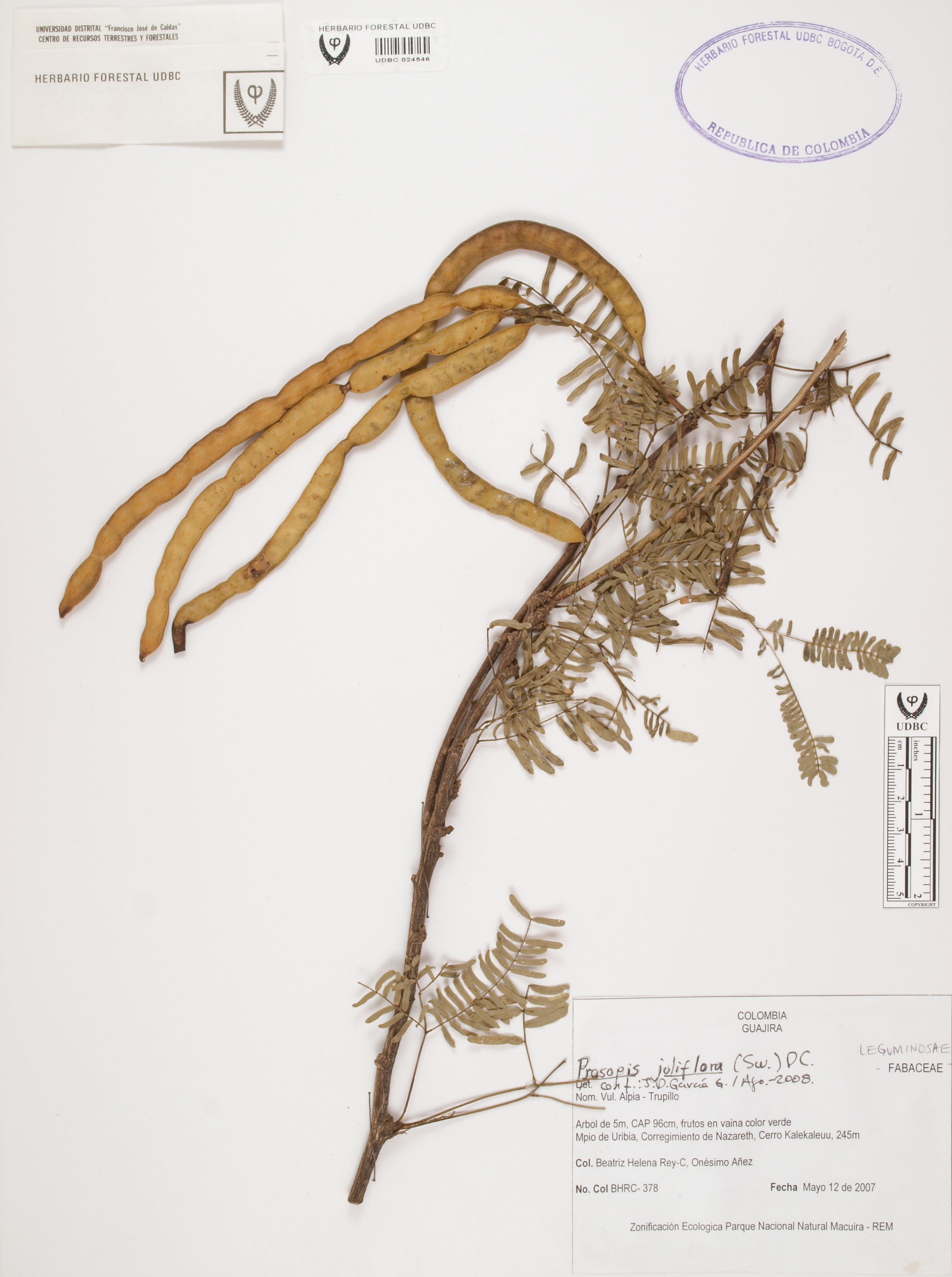 Fotografía del ejemplar Rey-C., B. 378, determinado como Neltuma juliflora en el año 2008