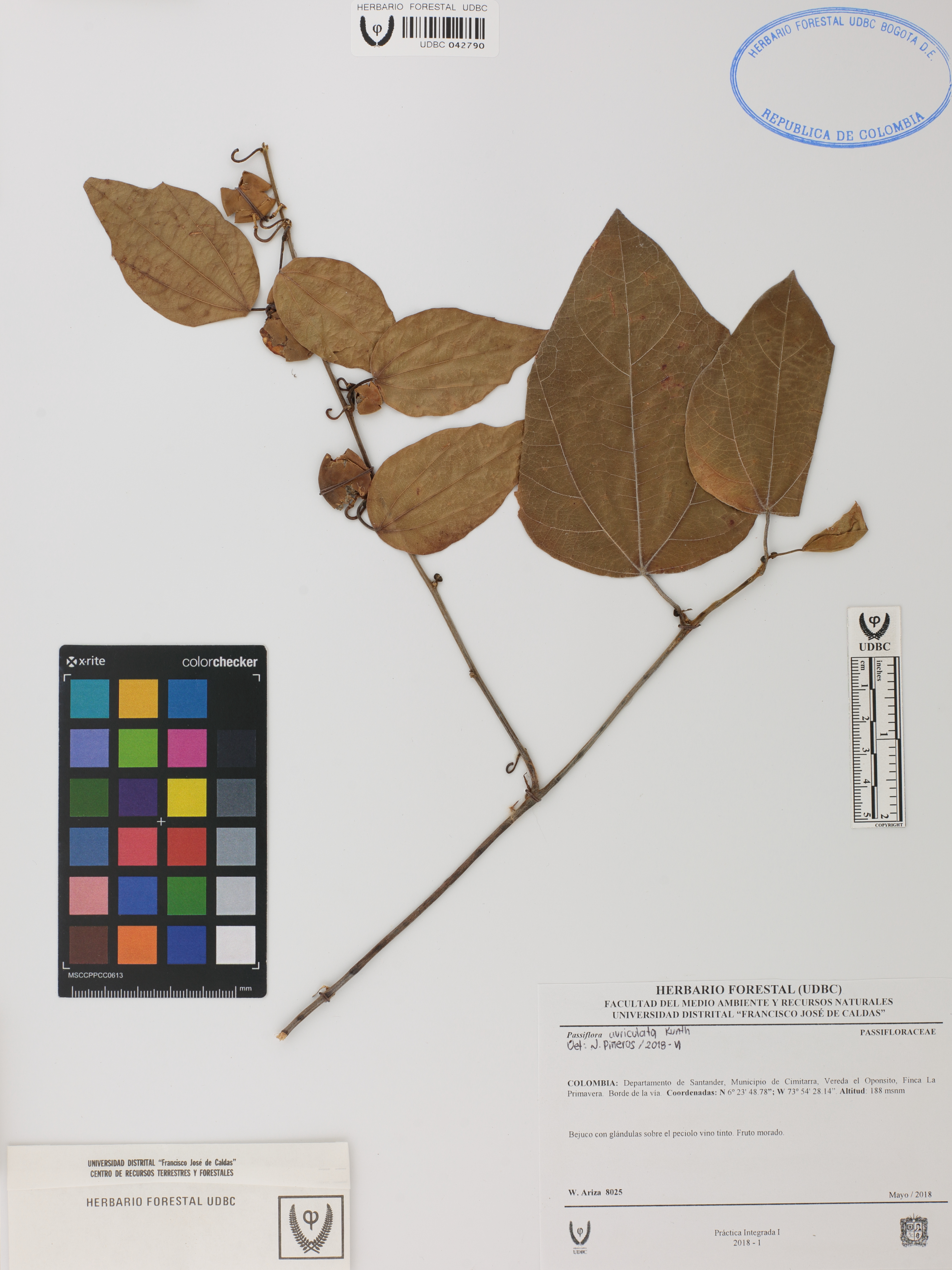 Fotografía del ejemplar Ariza, W. 8025, determinado como Passiflora auriculata en el año 2018