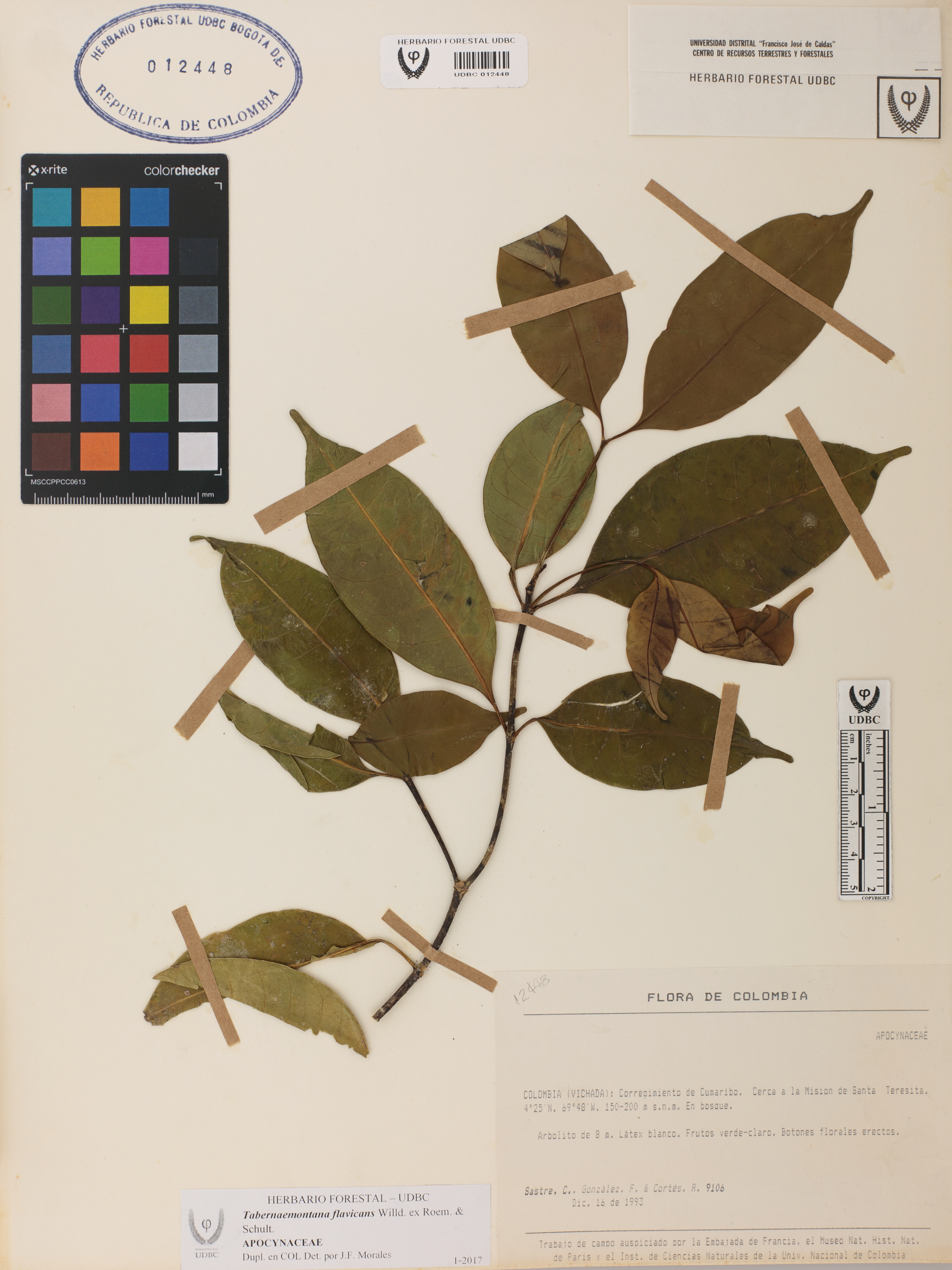 Fotografía del ejemplar Sastre, C. 9106, determinado como Tabernaemontana flavicans en el año 2017