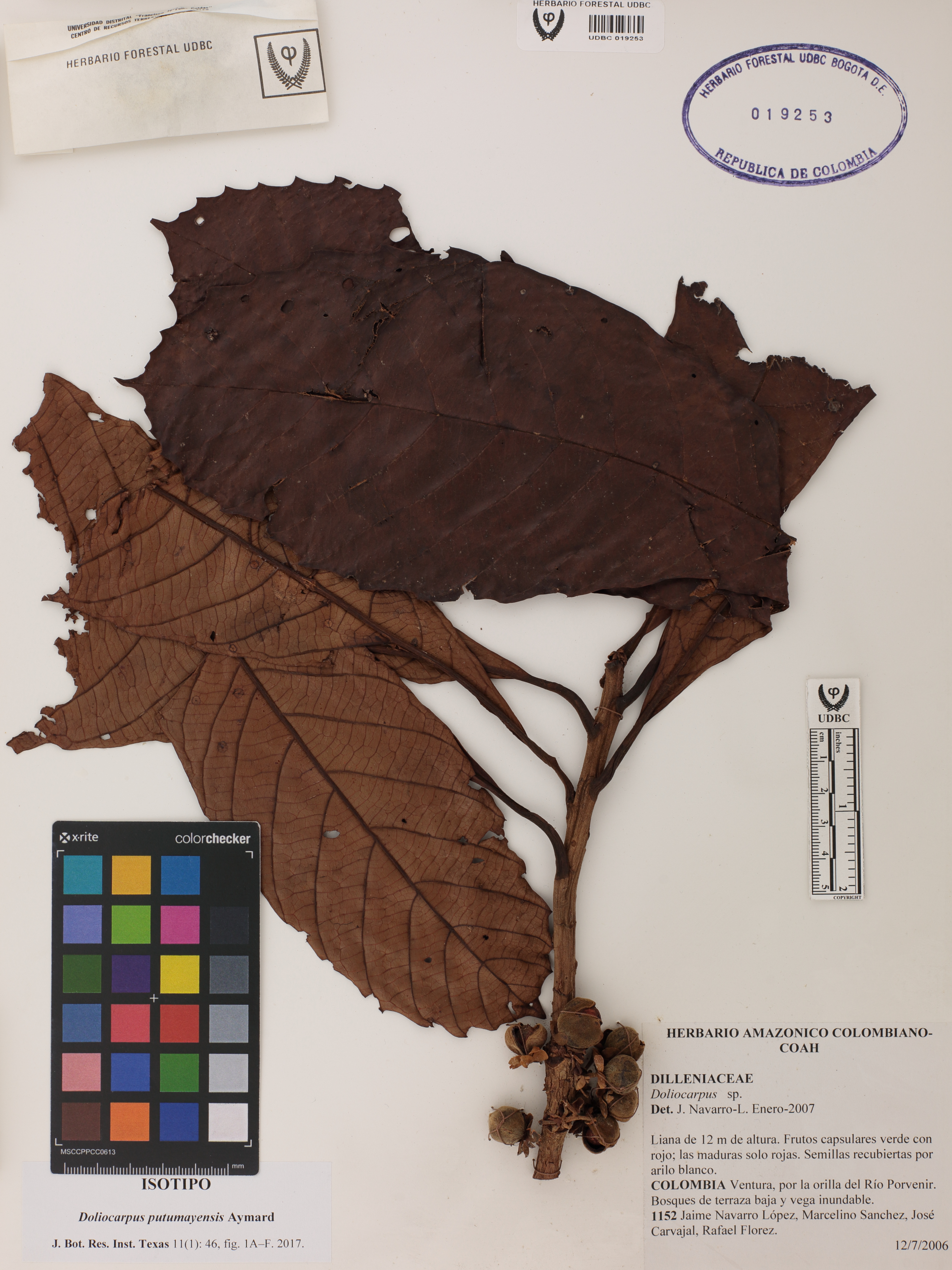 | dc.description | Fotografía del ejemplar Navarro, J. 1152, Isotipo de Doliocarpus putumayensis | |