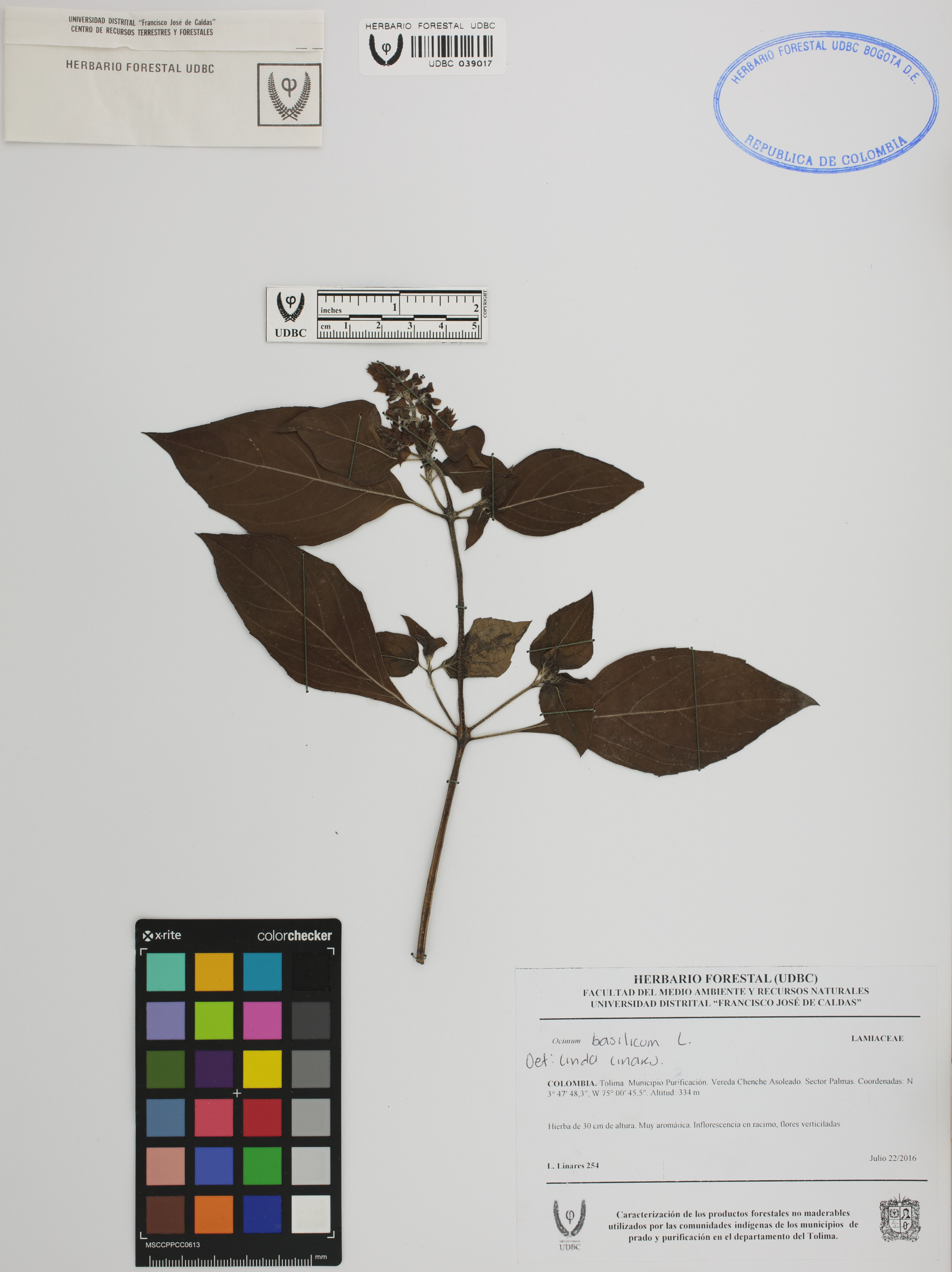 Fotografía del ejemplar Linares, L. 254, determinado como Ocimum basilicum