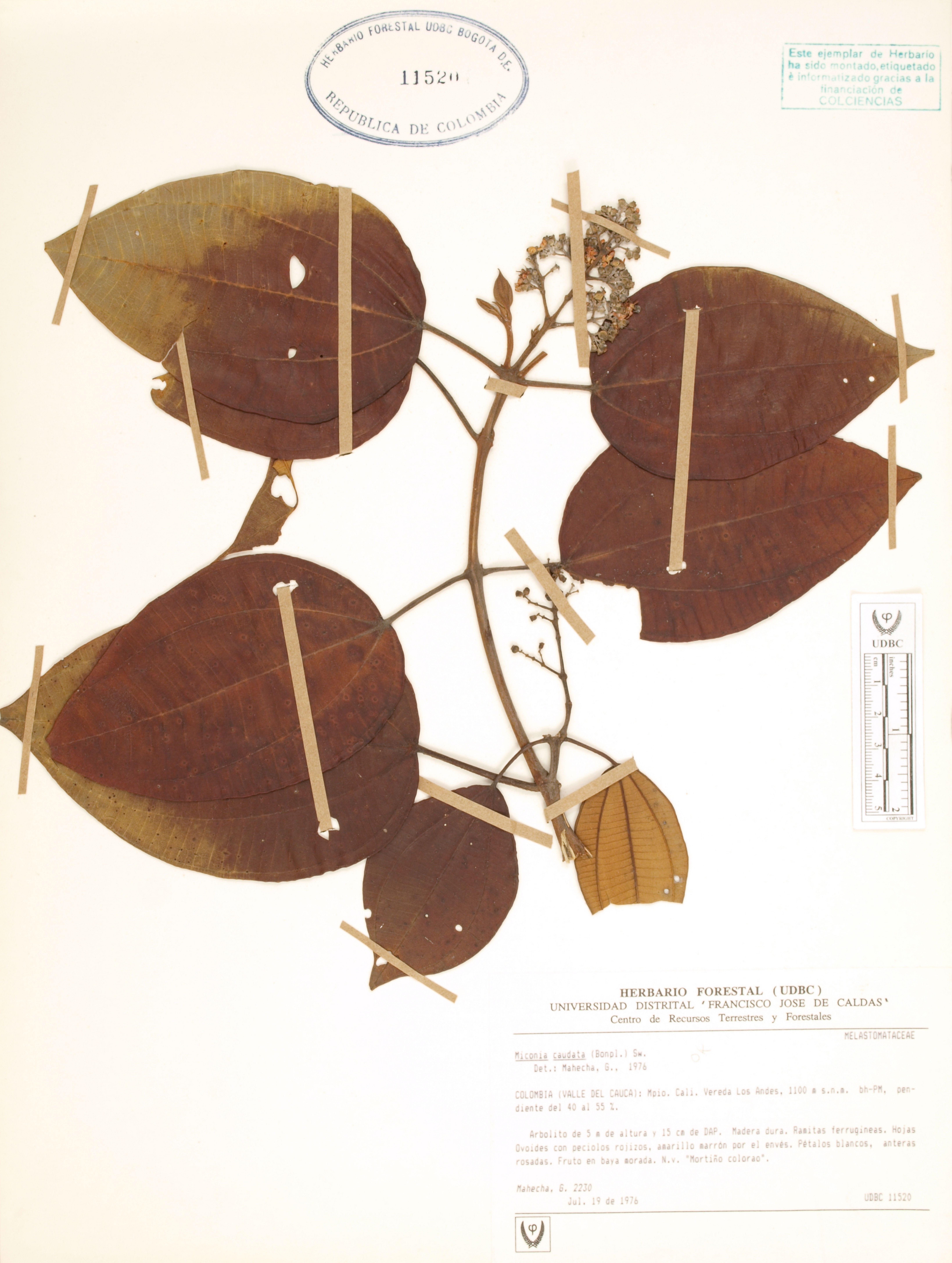 Fotografía del ejemplar Mahecha, G. 2230, determinado como Miconia caudata