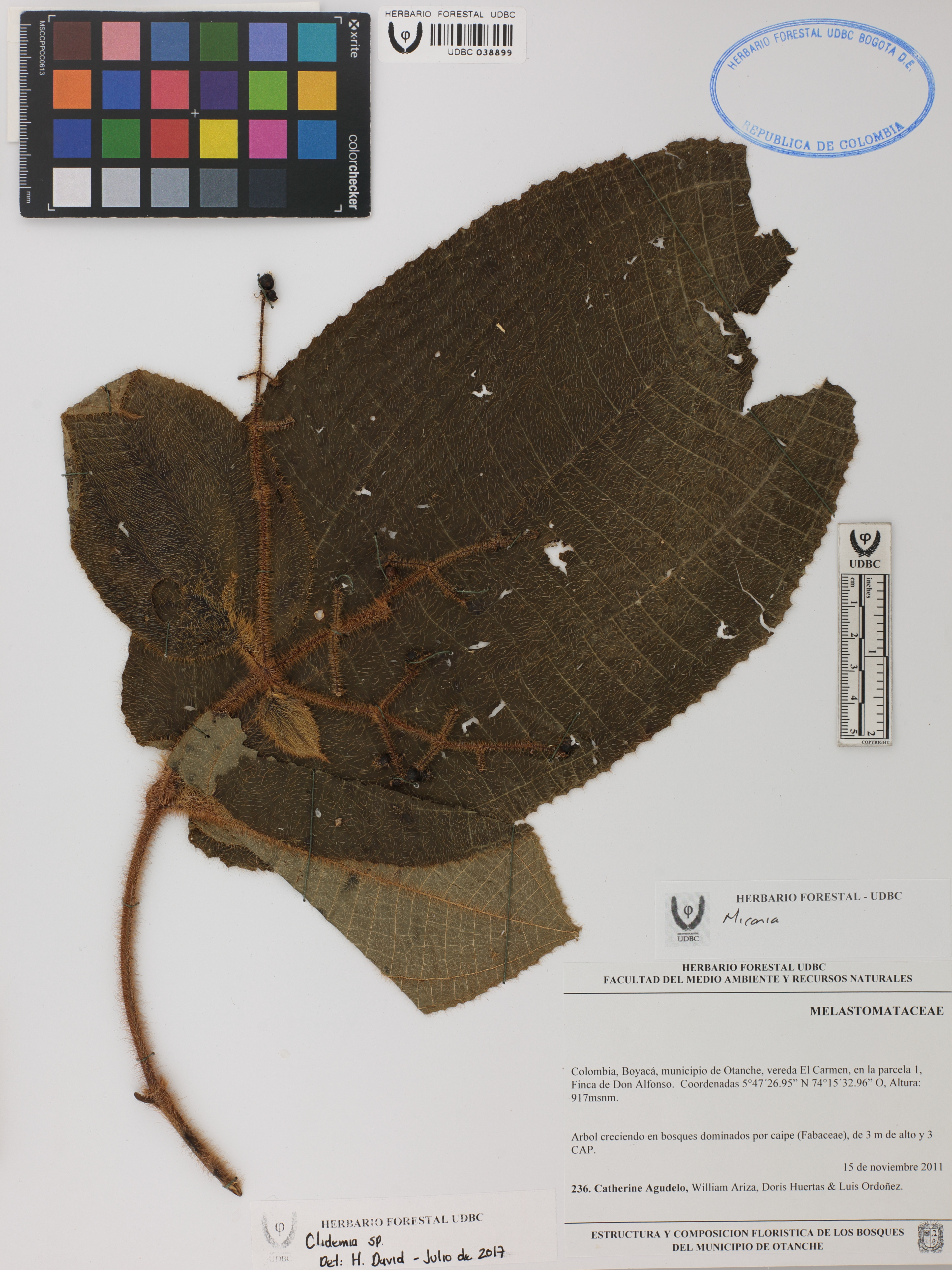 | dc.description | Fotografía del ejemplar Agudelo, C. 236, determinado como Clidemia sp. en el año 2017 | |