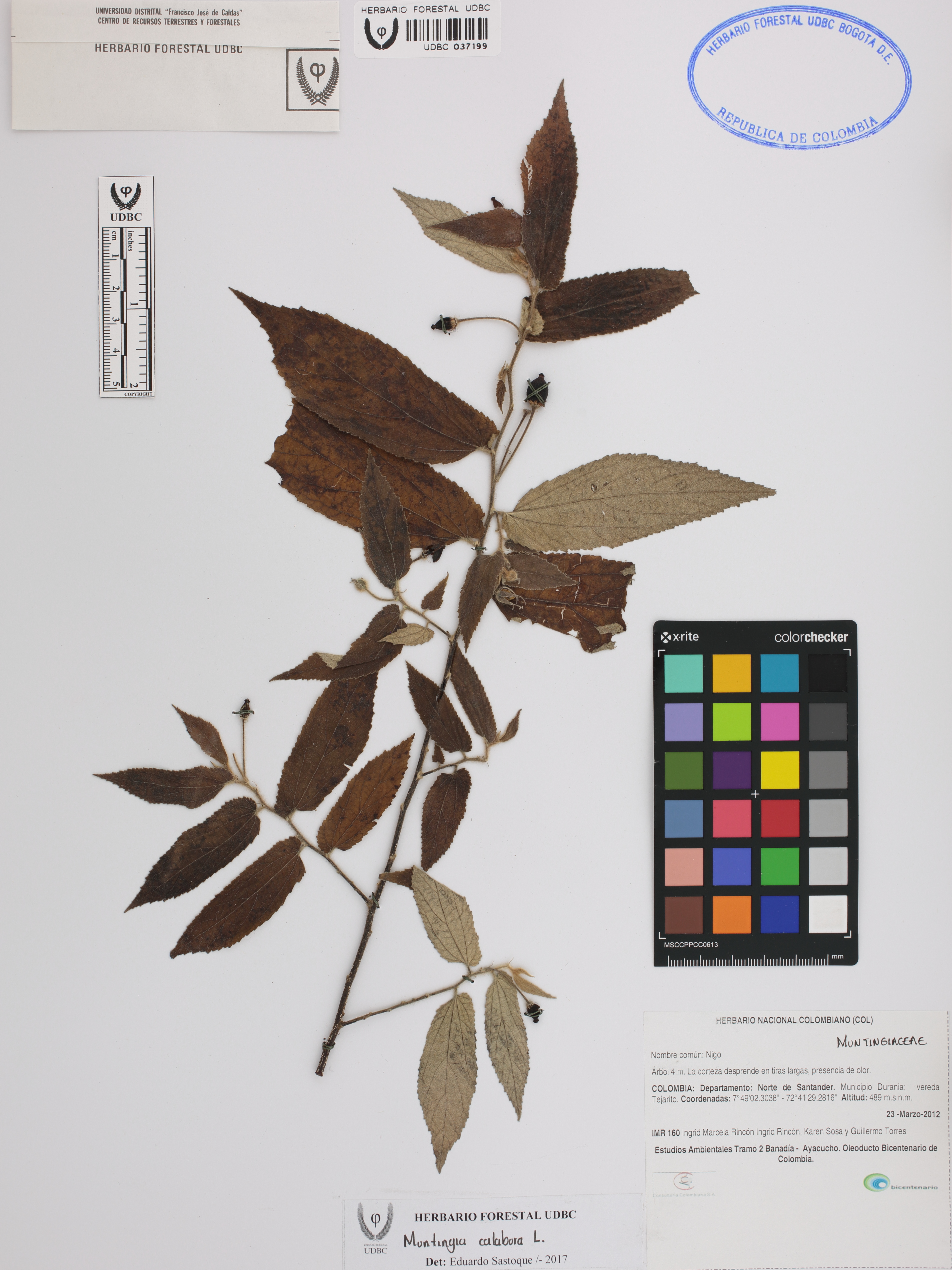 Fotografía del ejemplar Rincón, I. 160, determinado como Muntingia calabura en el año 2017