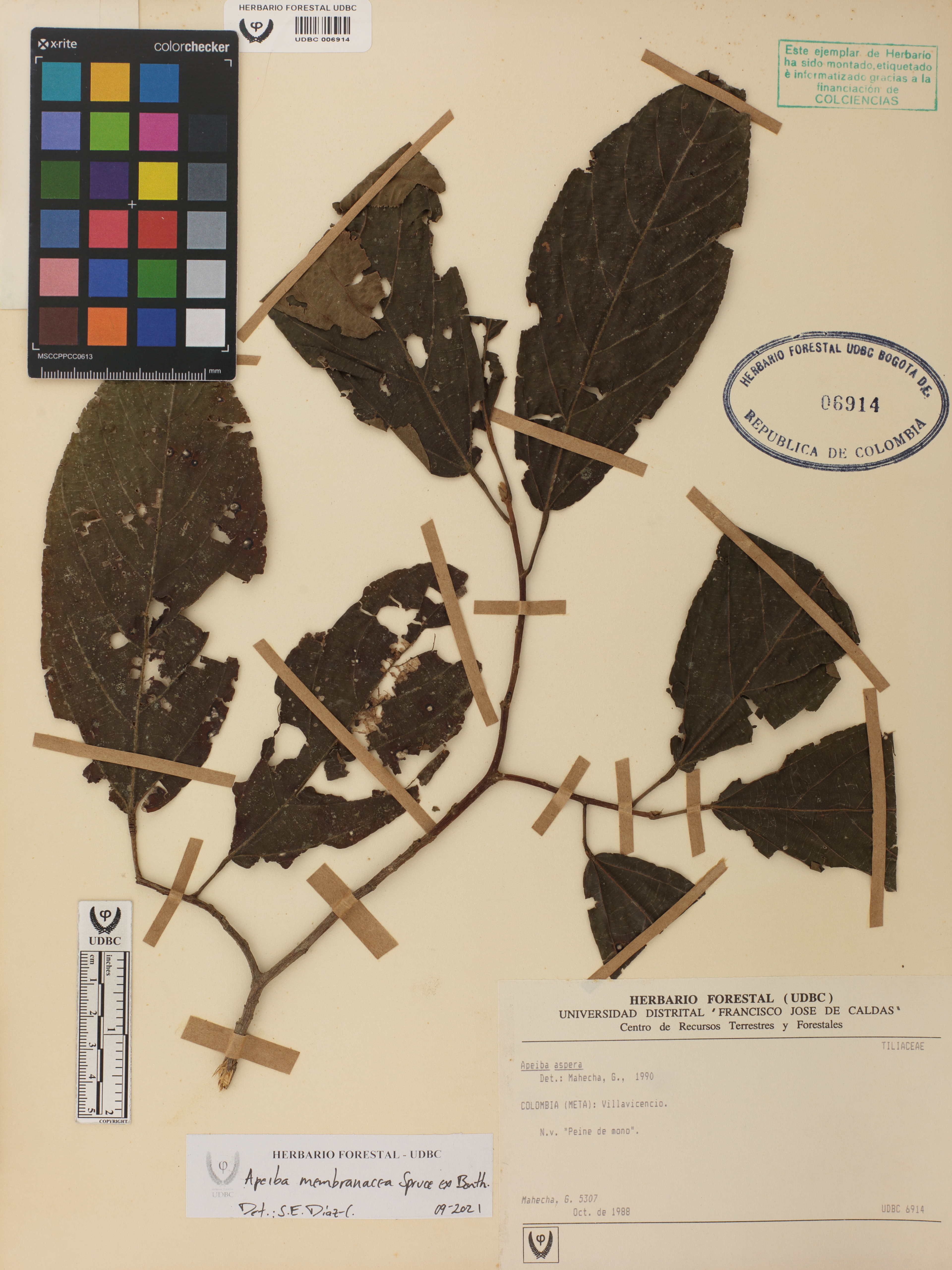 | dc.description | Fotografía del ejemplar Mahecha, G. 5307, determinado como Apeiba membranacea en el año 2021 | |