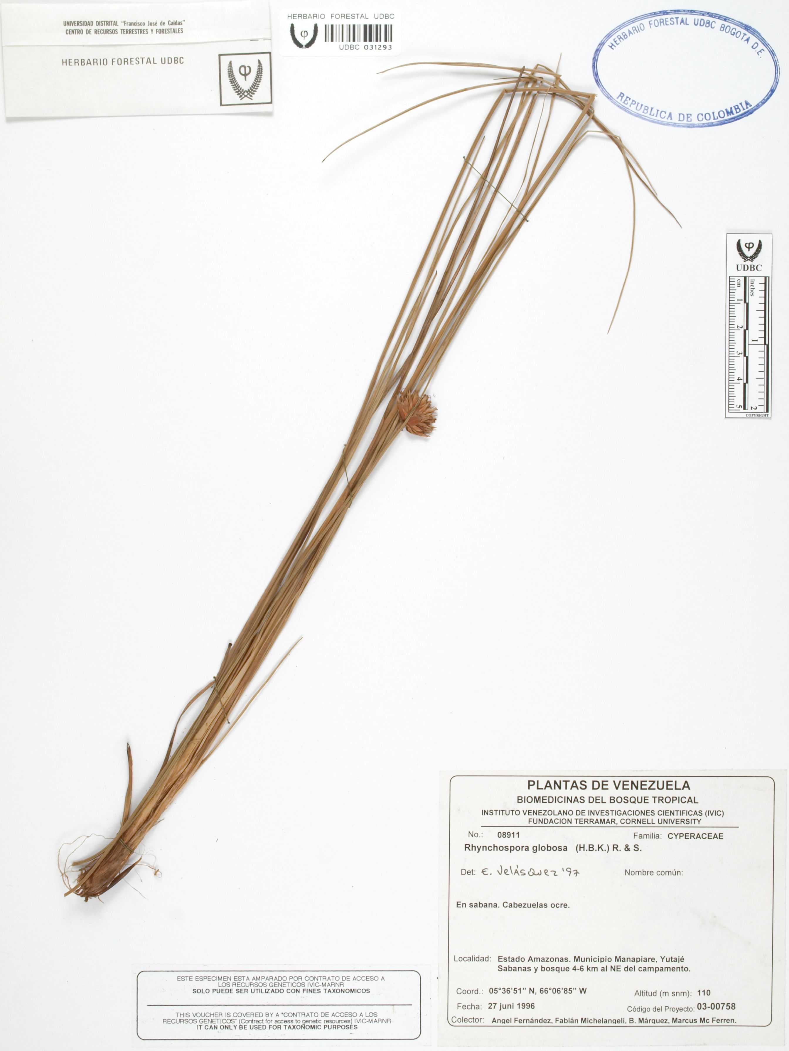 Fotografía del ejemplar Fernández, A. 8911, determinado como Rhynchospora globosa en el año 1997