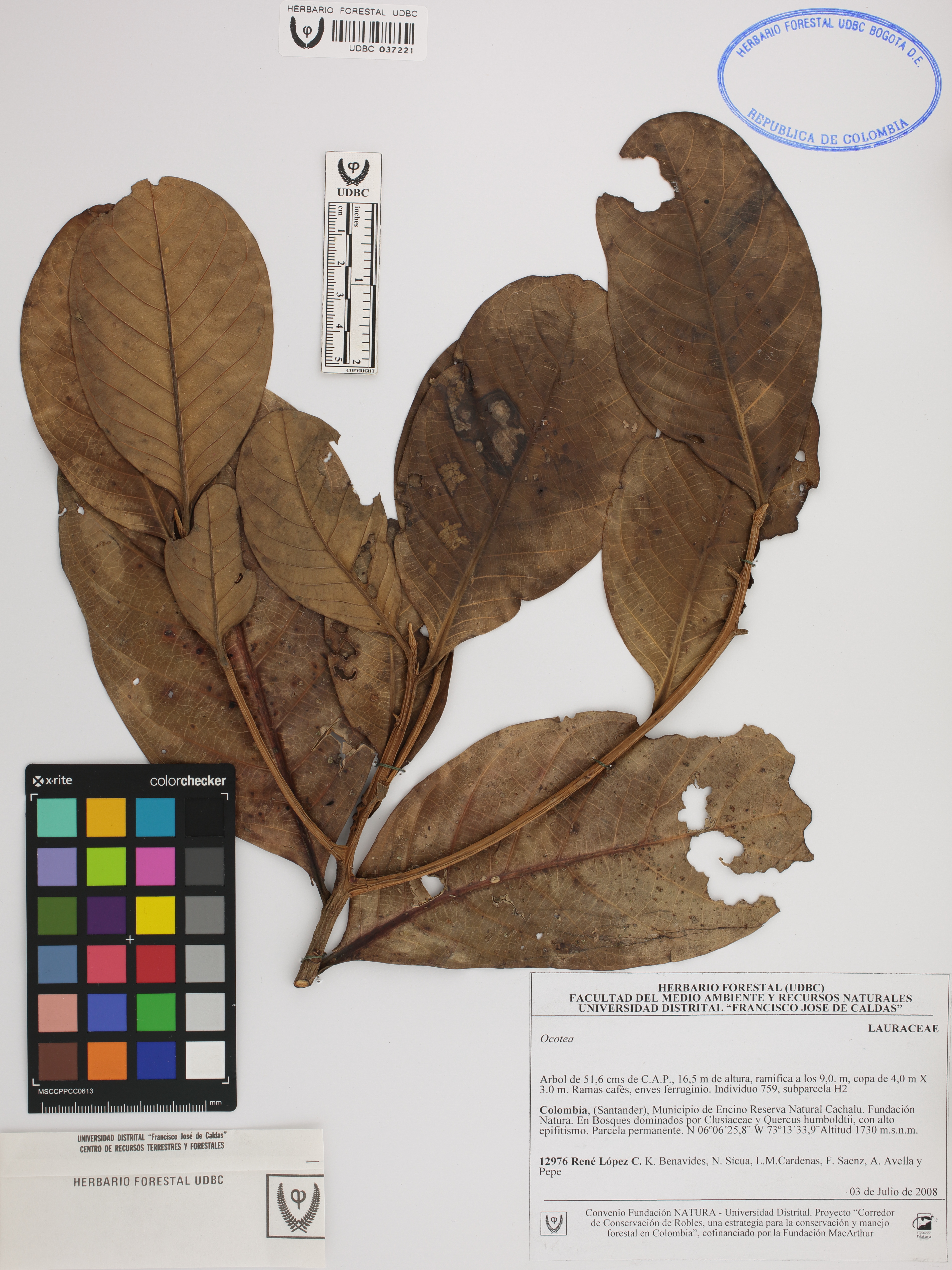 Fotografía del ejemplar López, R. 12976, determinado como Ocotea sp.