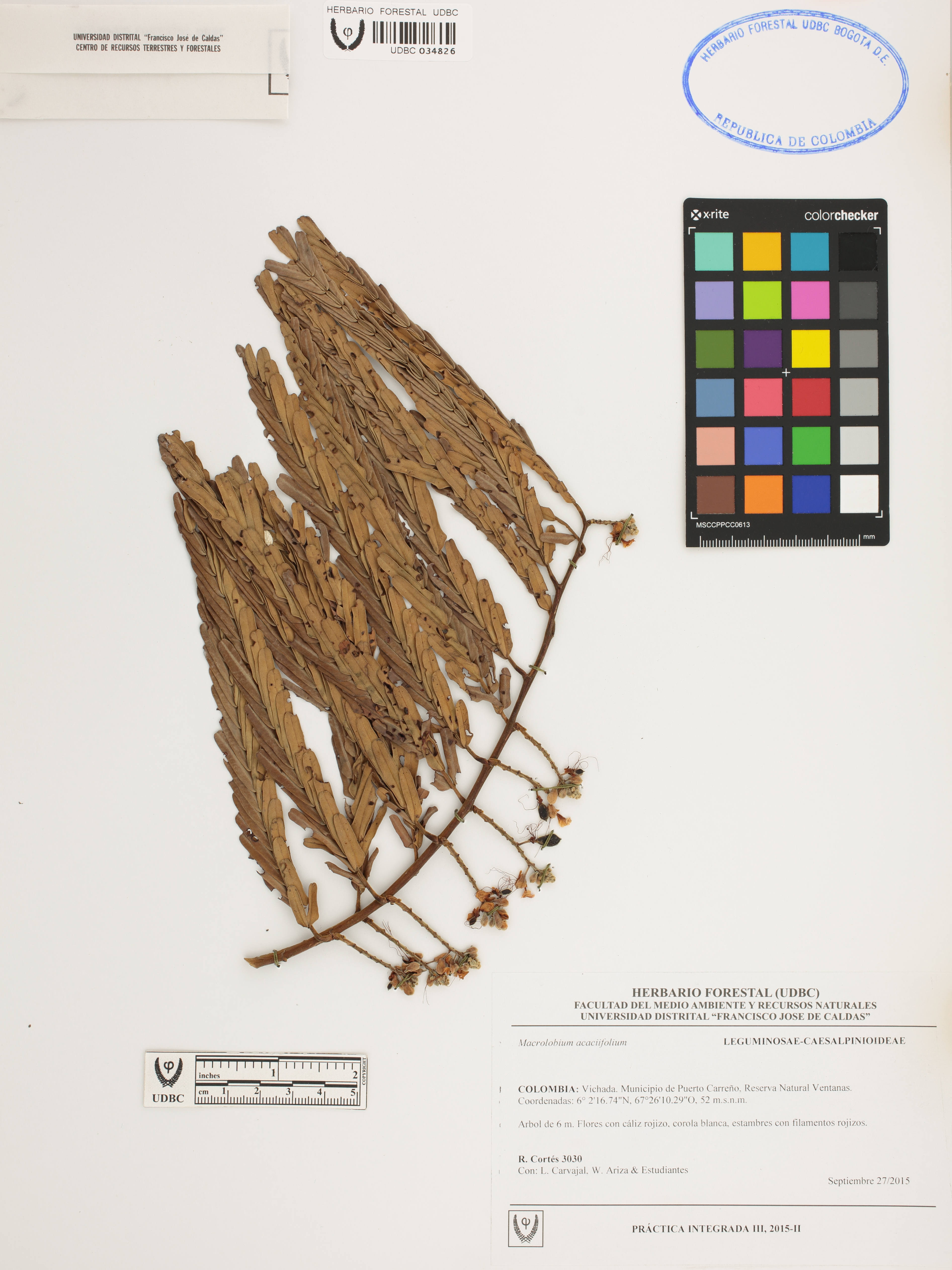 Fotografía del ejemplar Cortés, R. 3030, determinado como Macrolobium acaciifolium