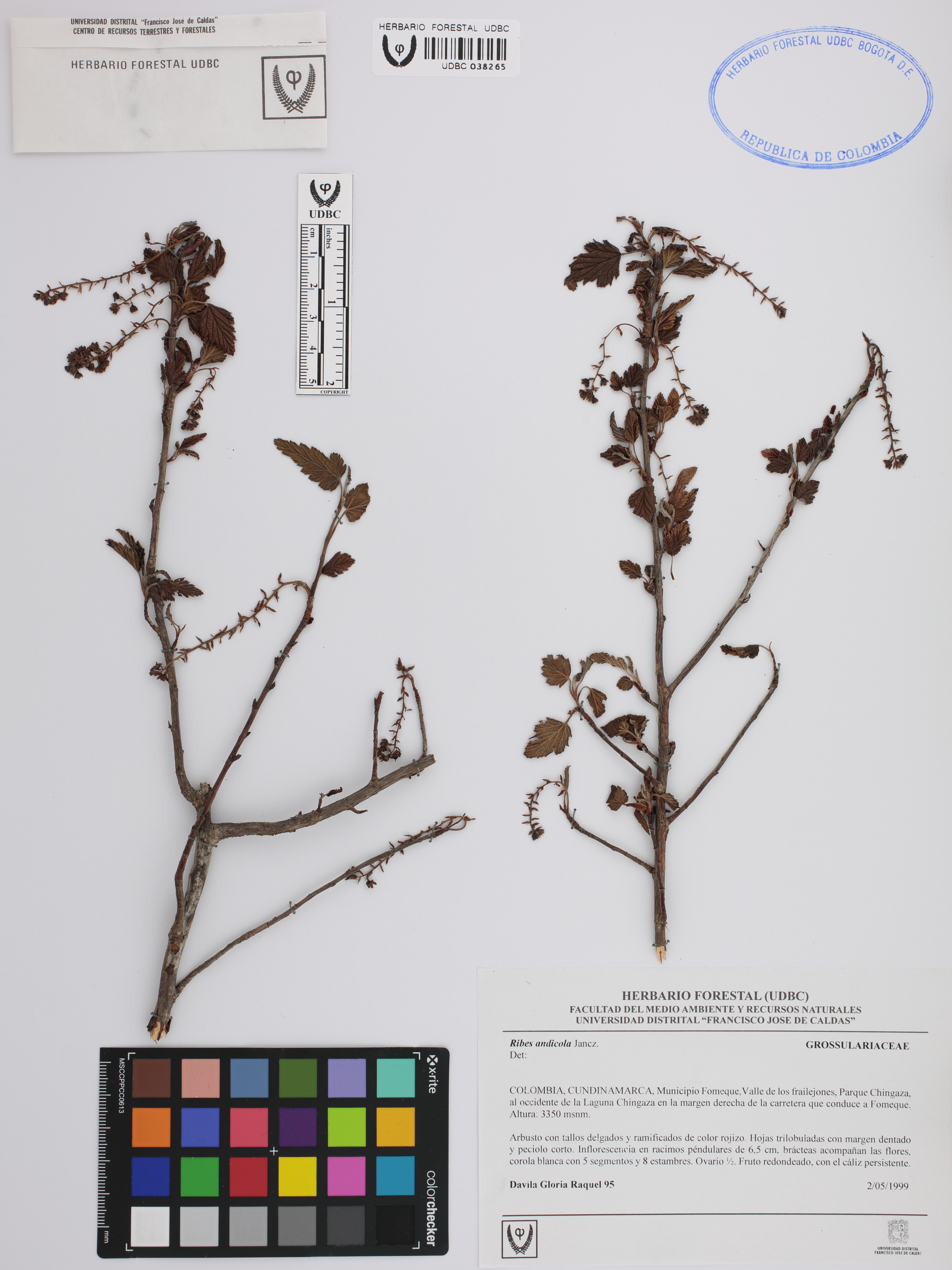 Fotografía del ejemplar Dávila, G. 95, determinado como Ribes andicola