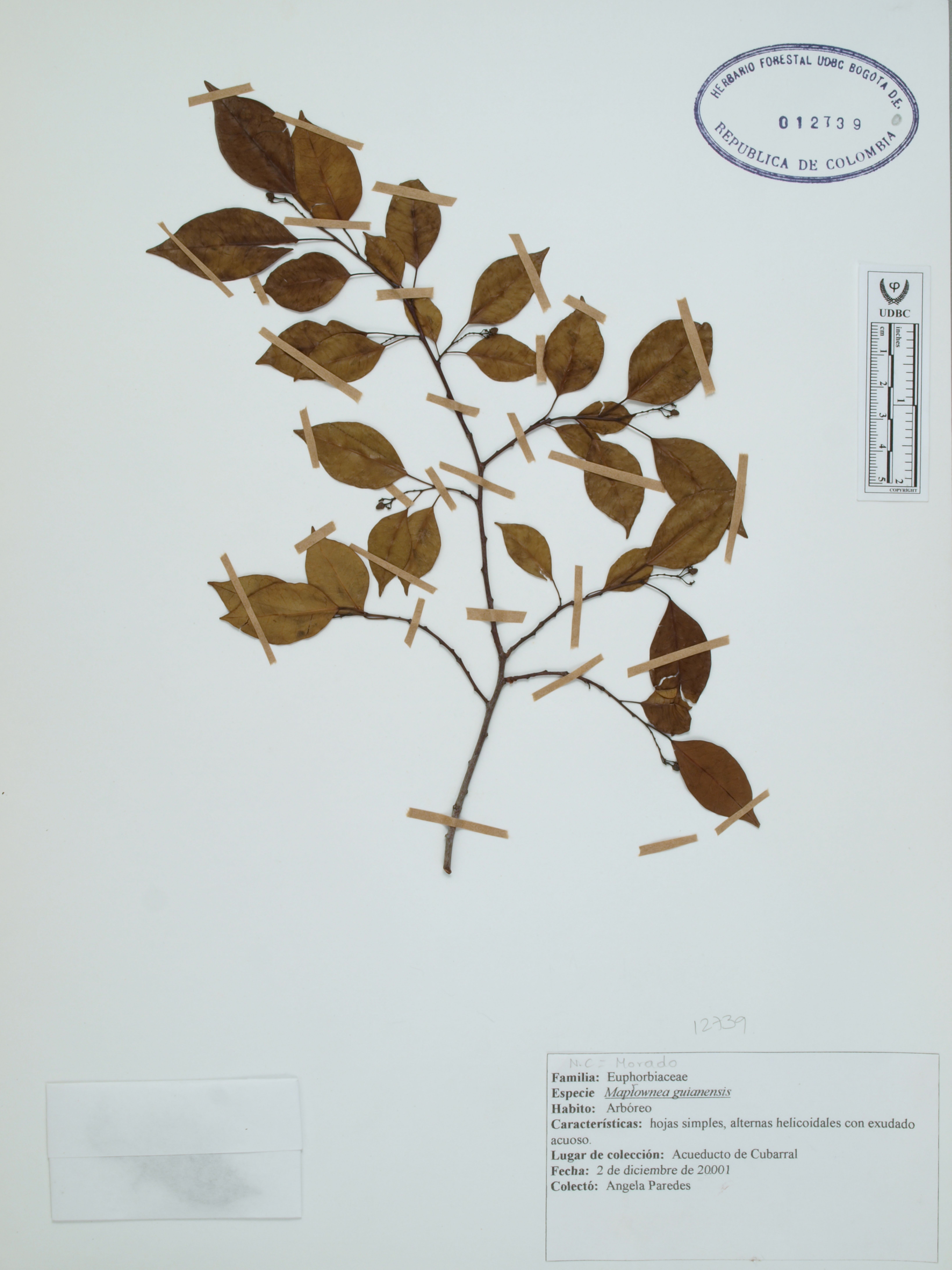 | dc.description | Fotografía del ejemplar Paredes, A., determinado como Maprounea guianensis | |