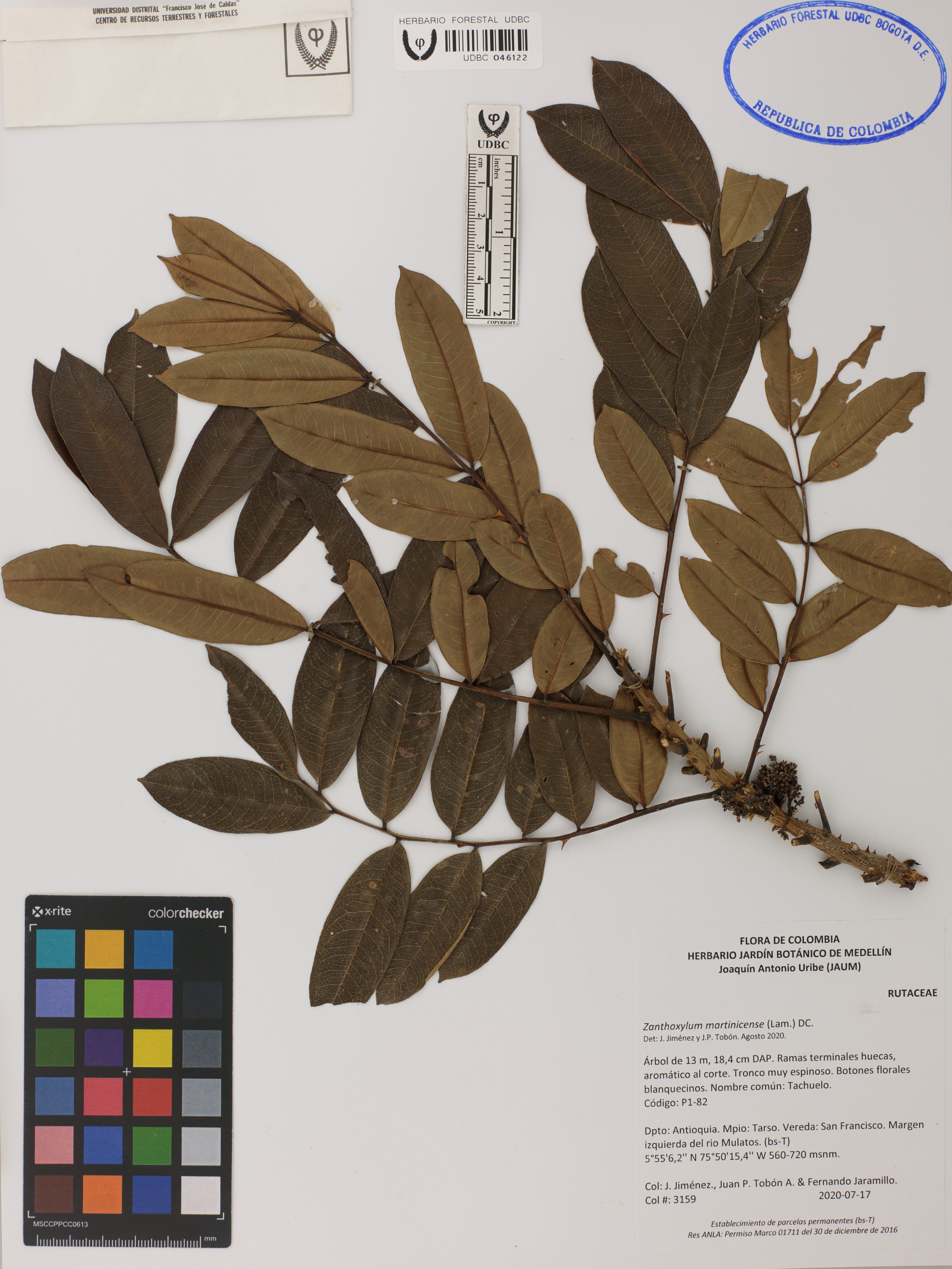 Fotografía del ejemplar Jiménez, J. 3159, determinado como Zanthoxylum martinicense en el año 2020