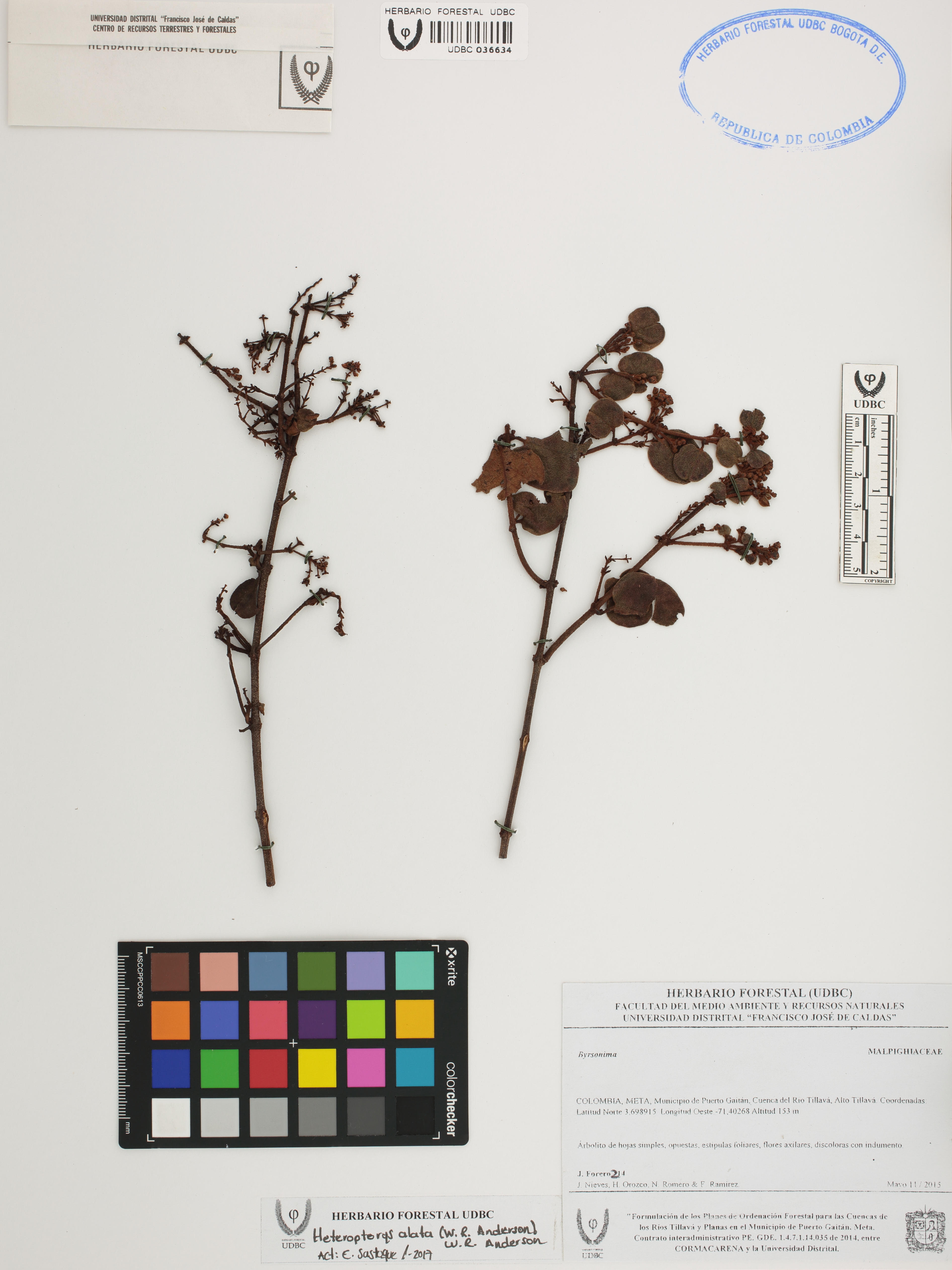 Fotografía del ejemplar Forero, J. 214, determinado como Heteropterys alata