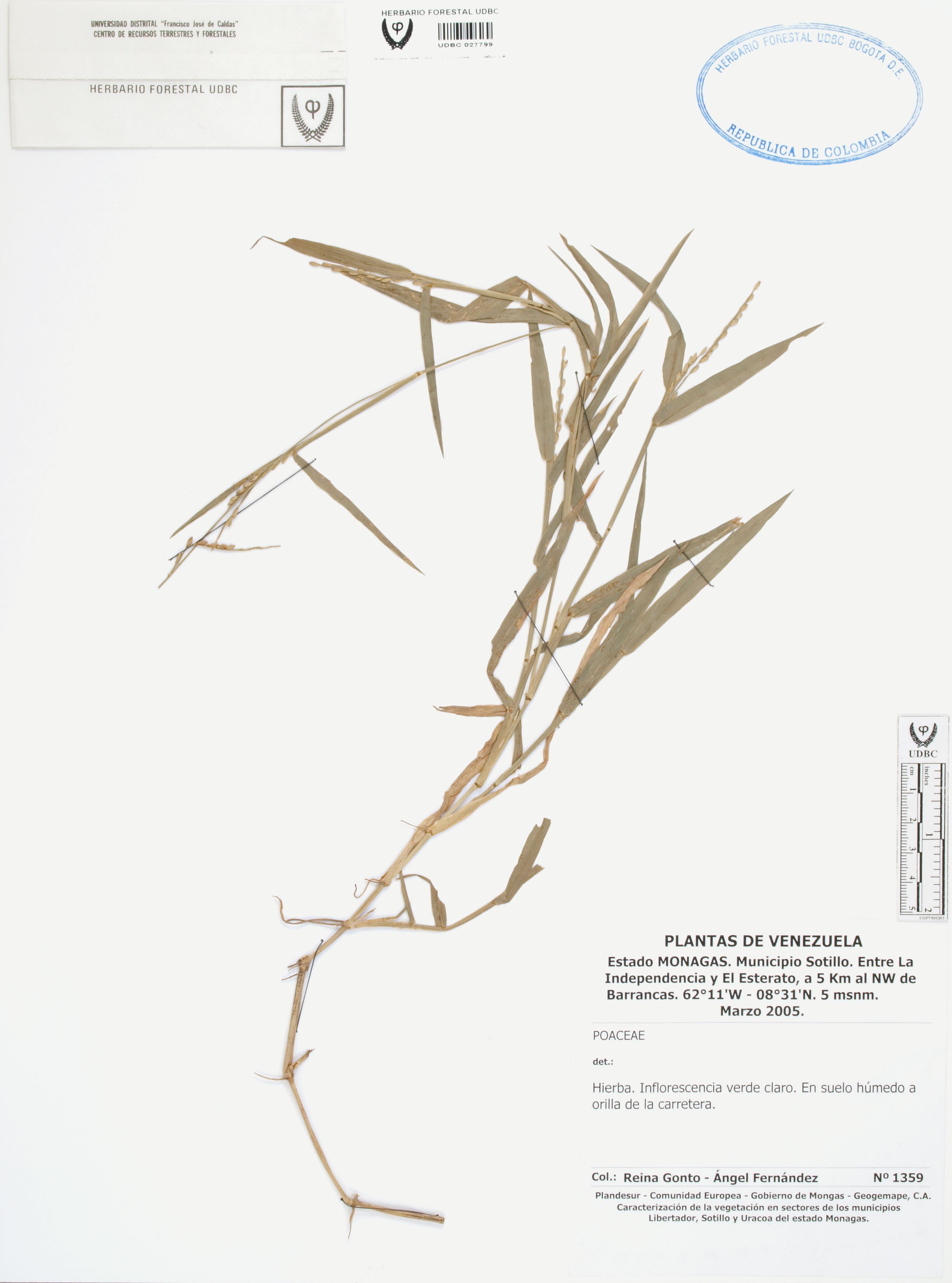 Fotografía del ejemplar Gonto, R. 1359, determinado como Poaceae