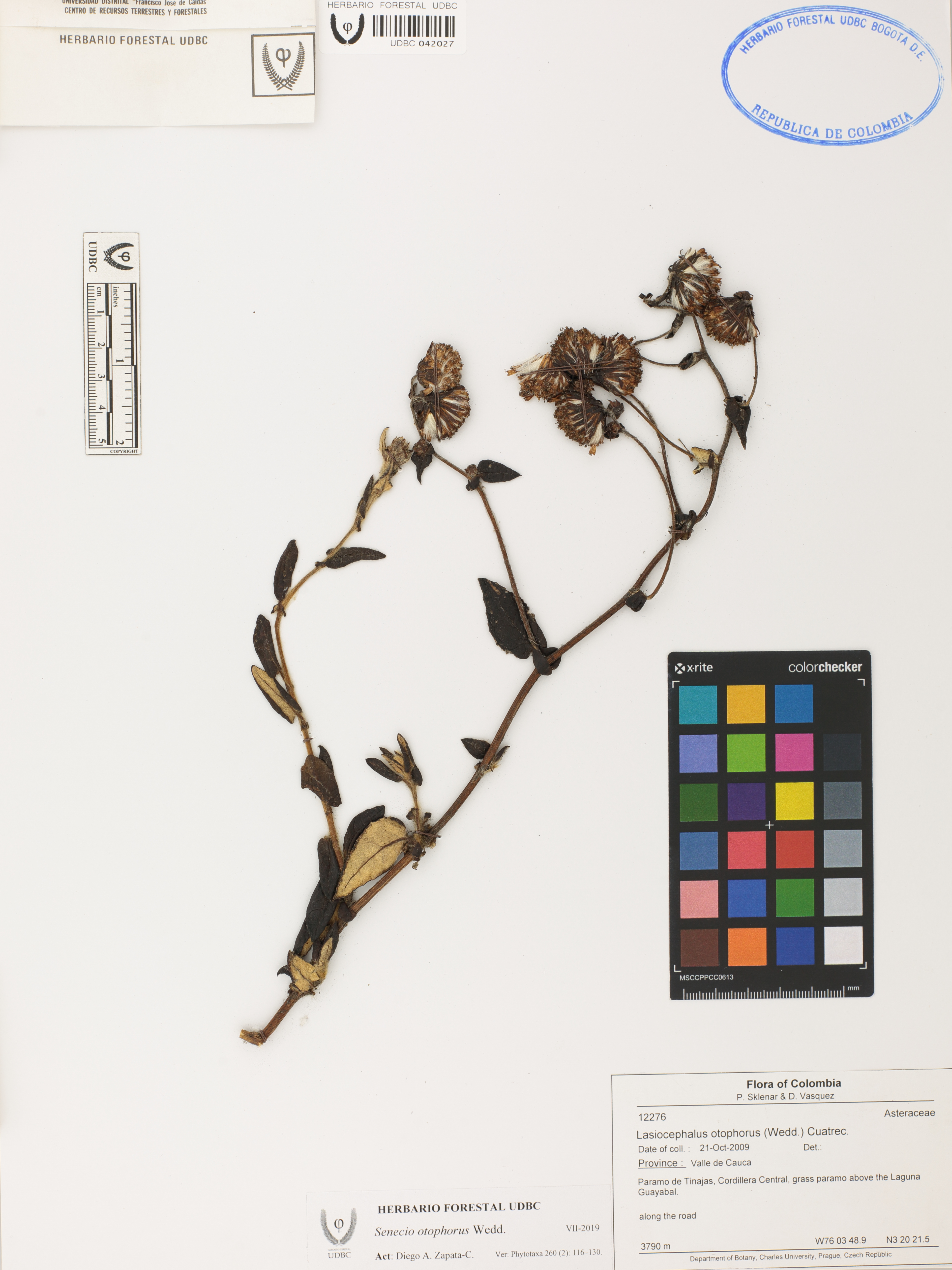 Fotografía del ejemplar Sklenar, P. 12276, determinado como Senecio otophorus