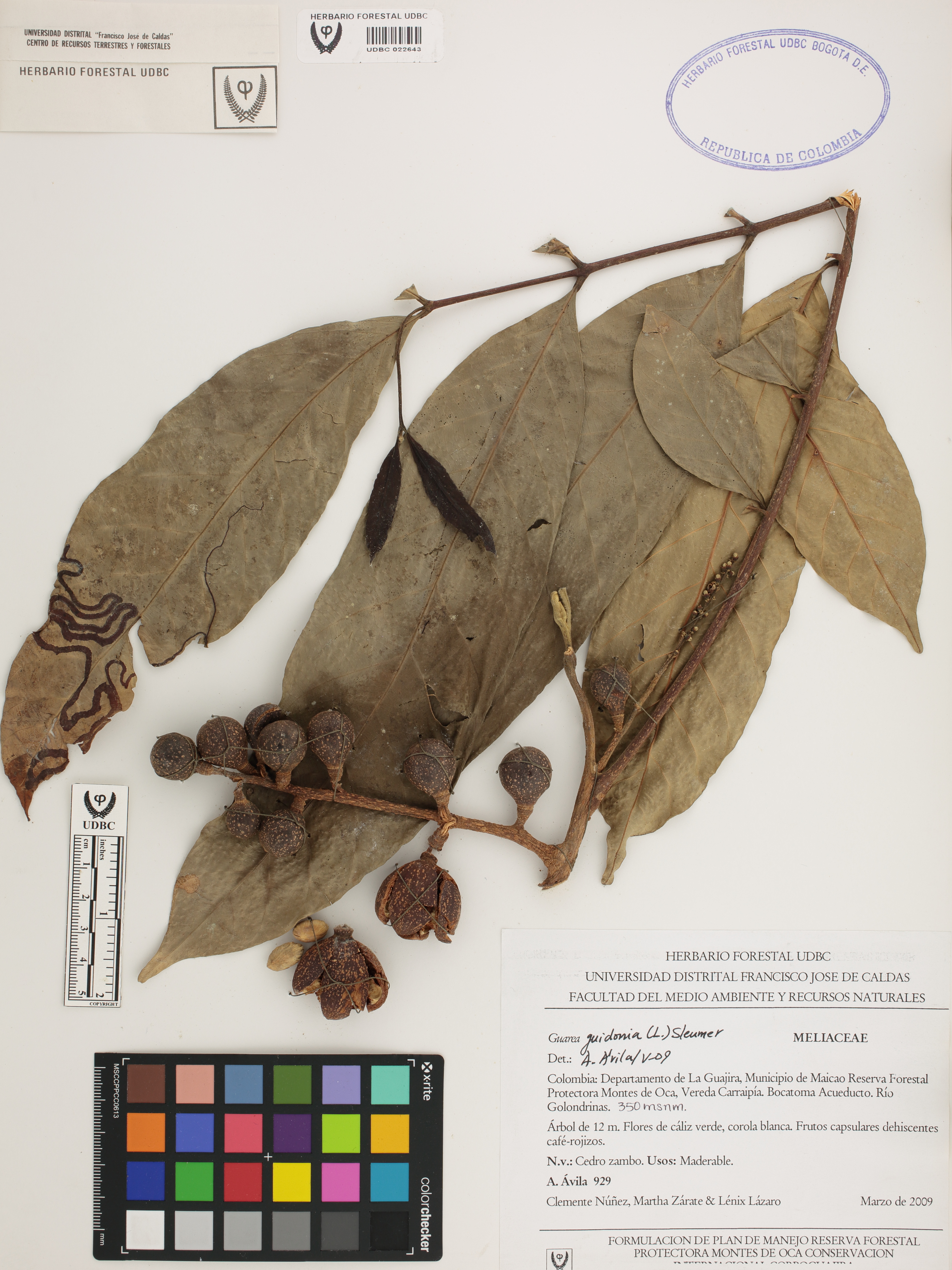 Fotografía del ejemplar Ávila, A. 929, determinado como Guarea guidonia en el año 2009